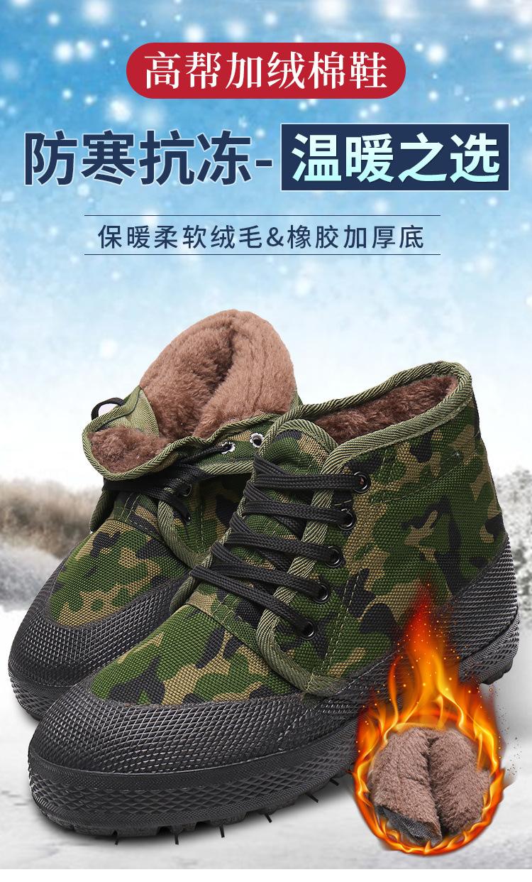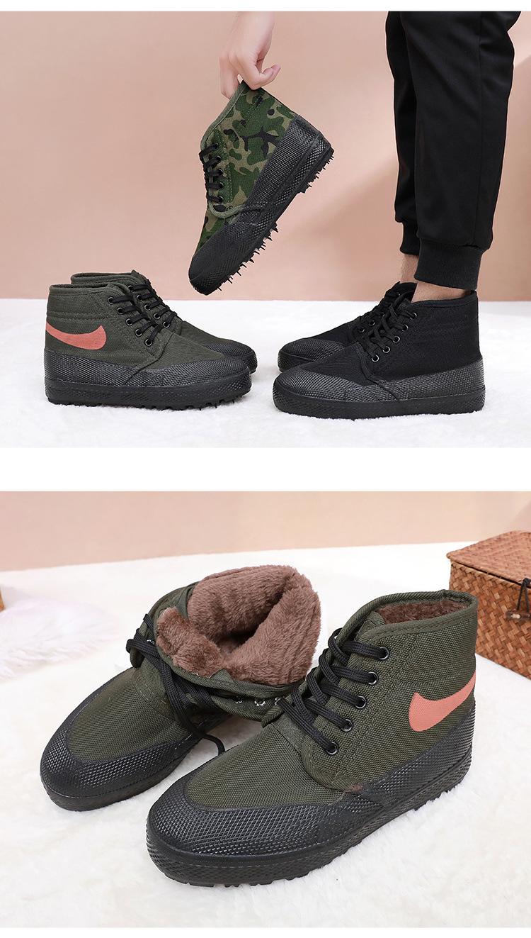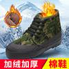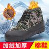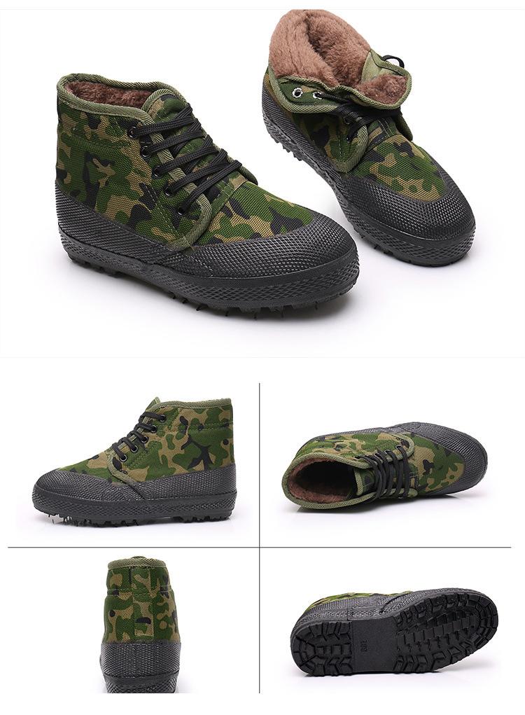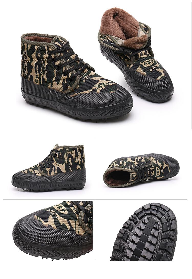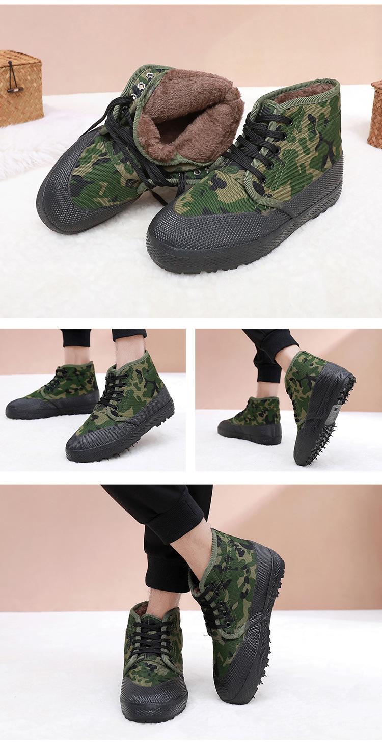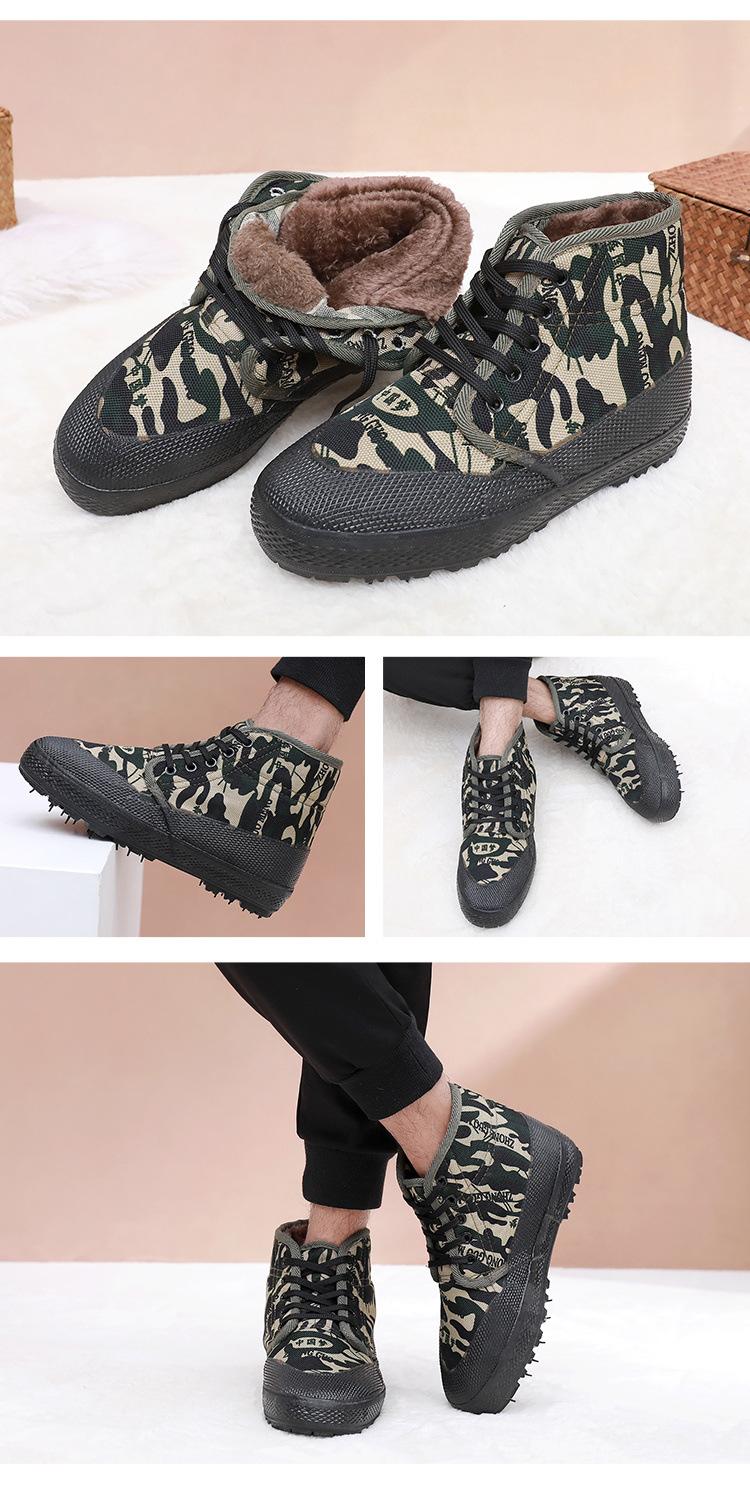 Sapatos de cano alto com forro de lã, calçados de algodão acolchoados, calçados de trabalho ao ar livre, calçados de trabalho de camuflagem antiderrapantes e resistentes ao desgaste, quentes para o inverno