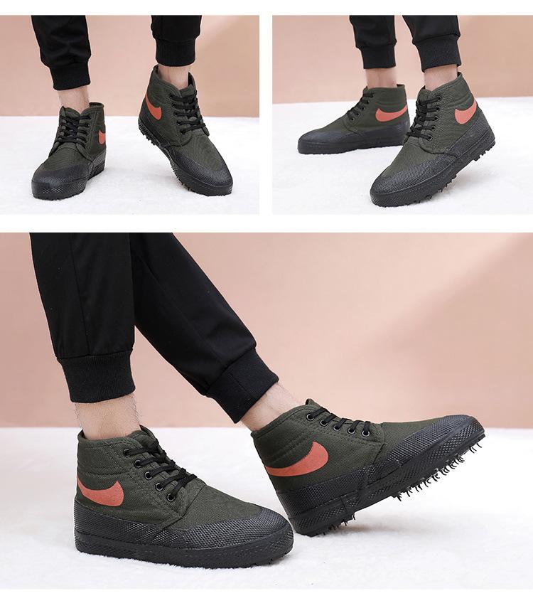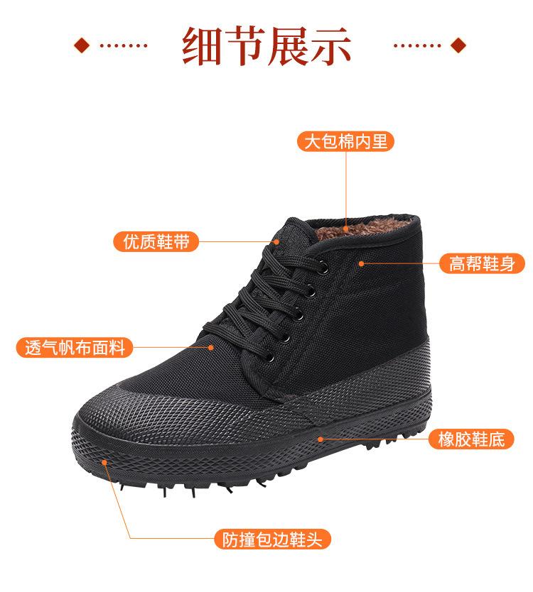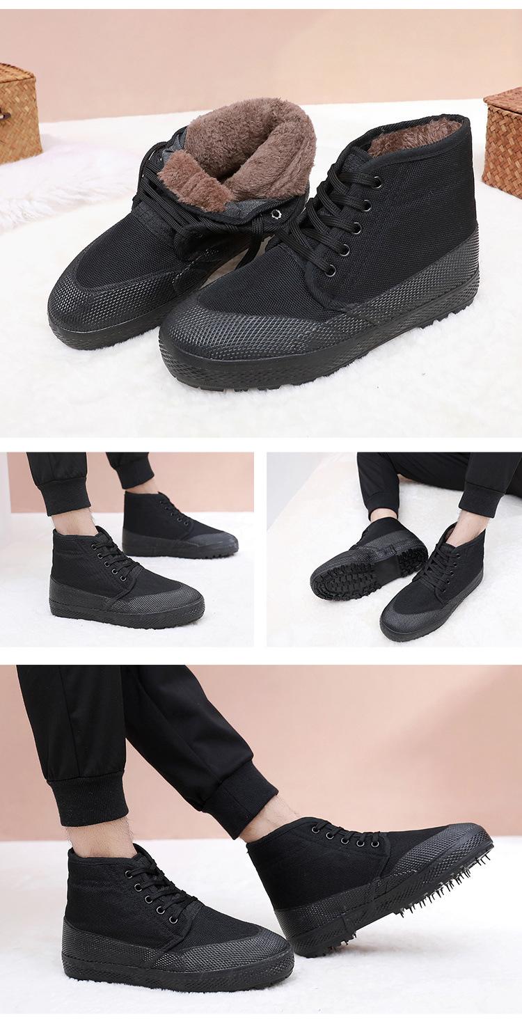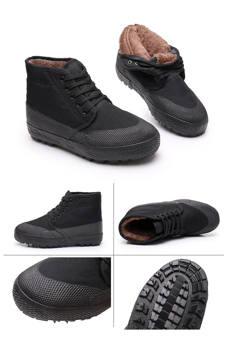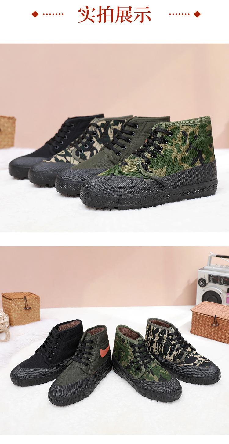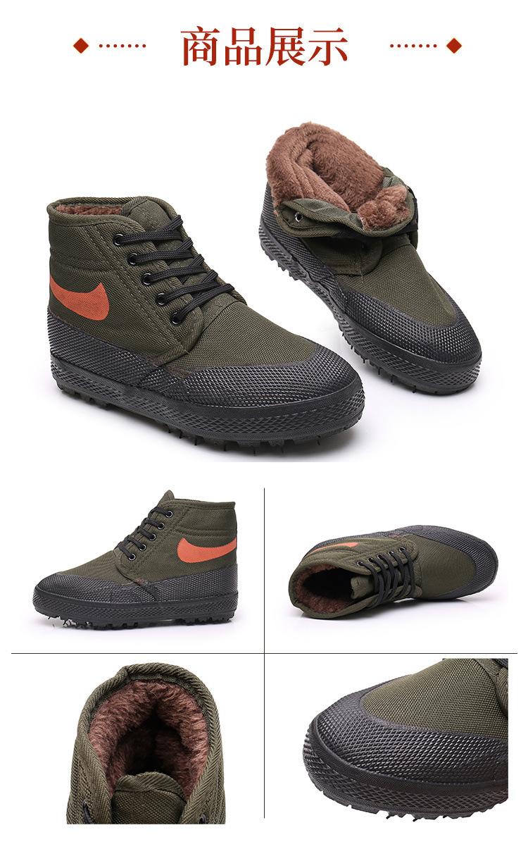 Sapatos de cano alto com forro de lã, calçados de algodão acolchoados, calçados de trabalho ao ar livre, calçados de trabalho de camuflagem antiderrapantes e resistentes ao desgaste, quentes para o inverno