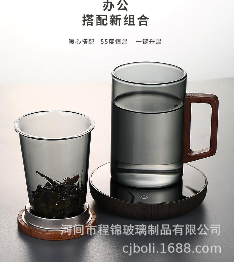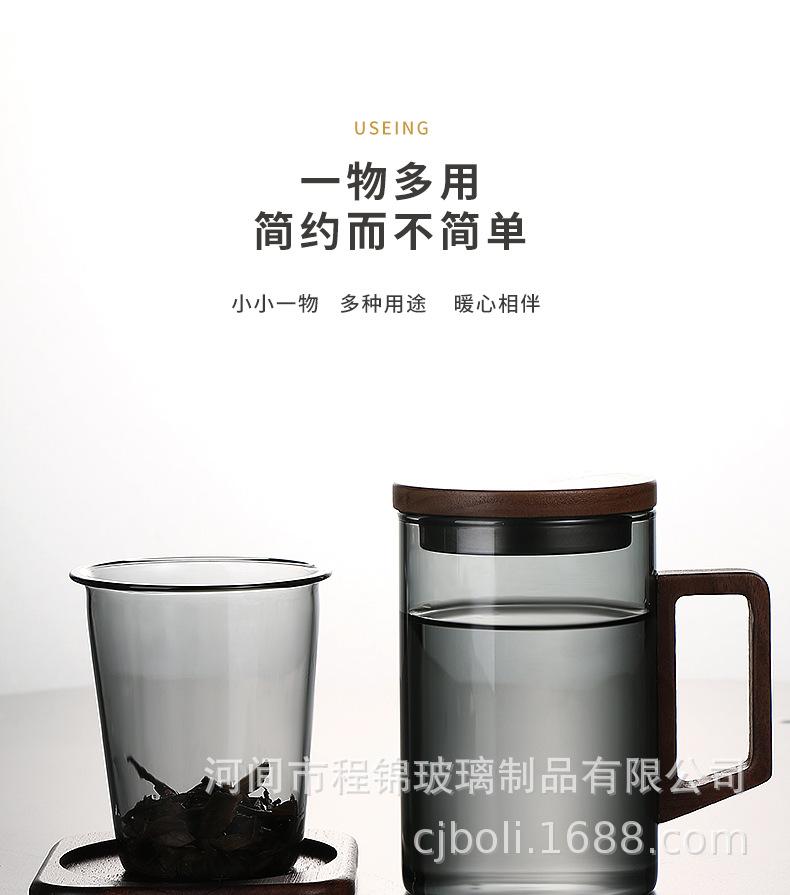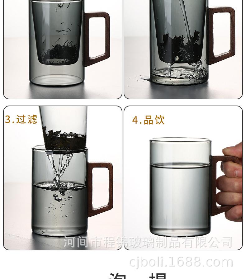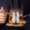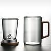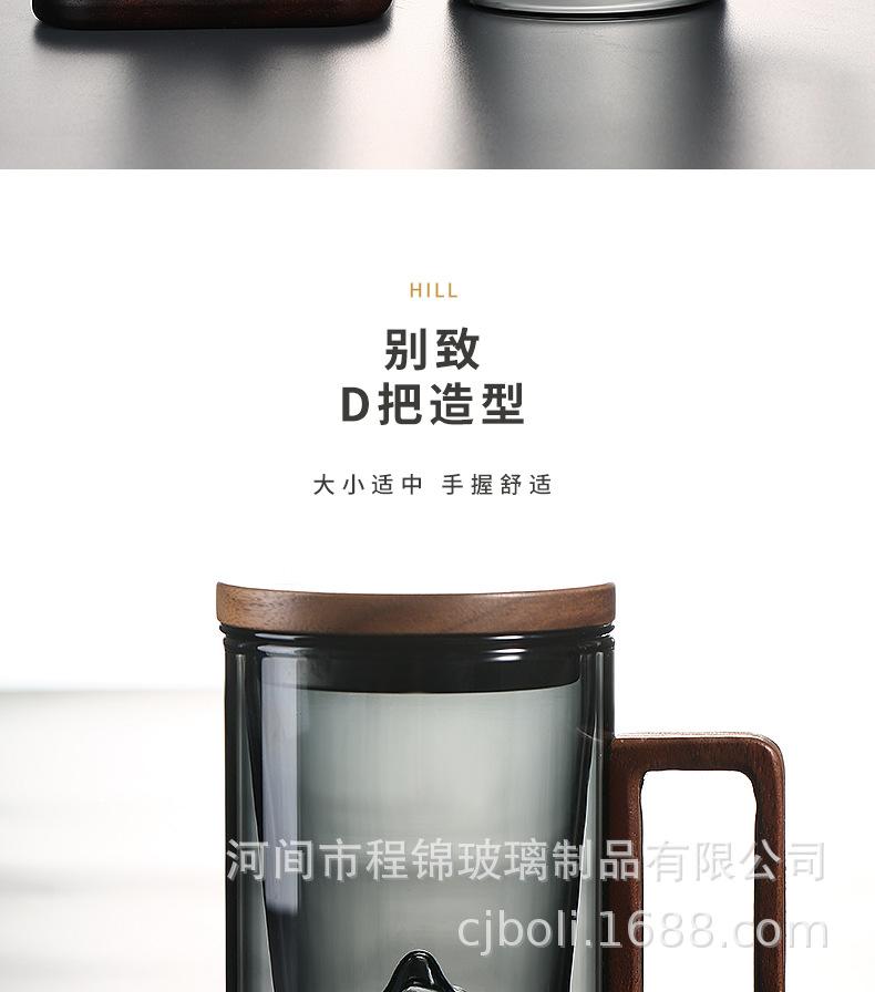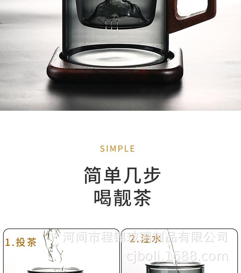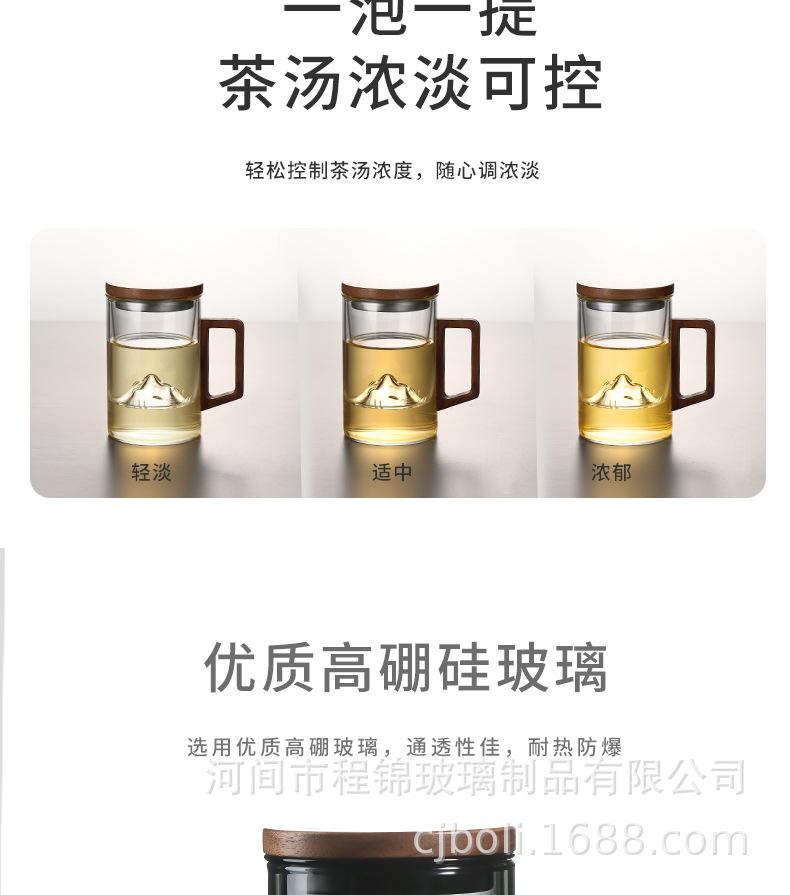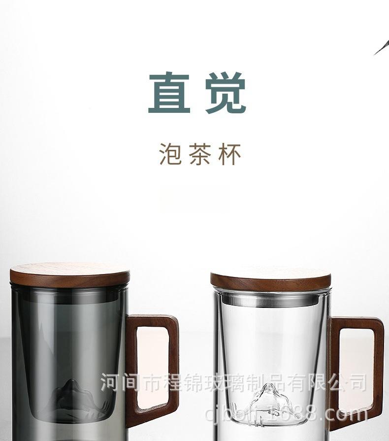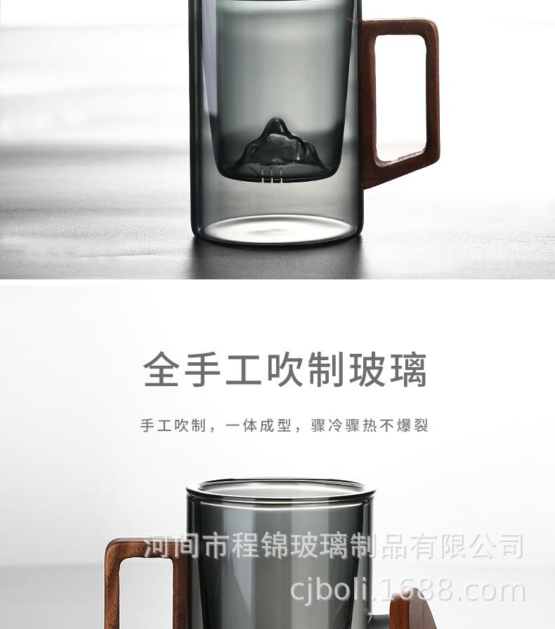 Copo de chá de vidro de alto teor de borosilicato para imersão em chá, copo de água resistente ao calor para escritório masculino, copo de separação de chá, vista para montanha, copo de três peças