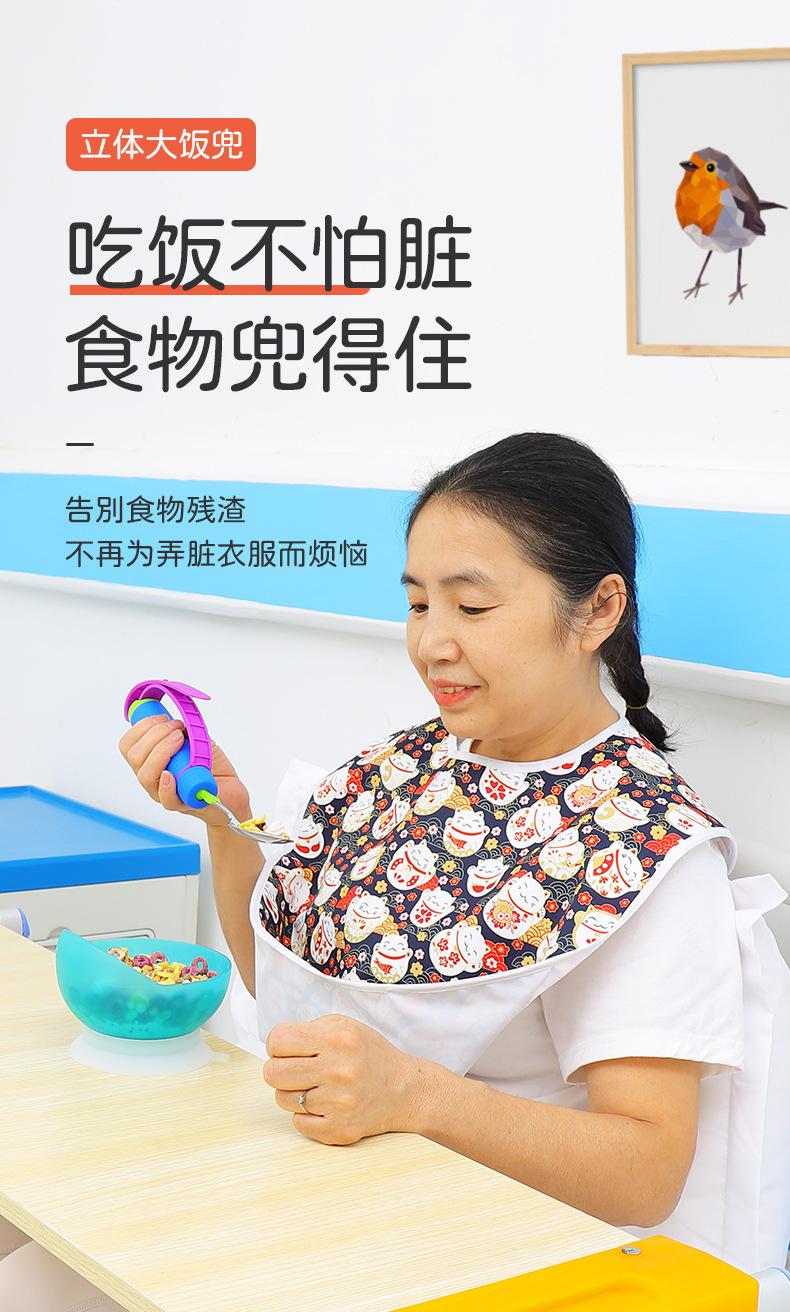 Babador de comida para idosos Babador especial à prova de vazamentos para alimentos para adultos Babador tridimensional à prova de sujeira, lavável, à prova d'água e óleo