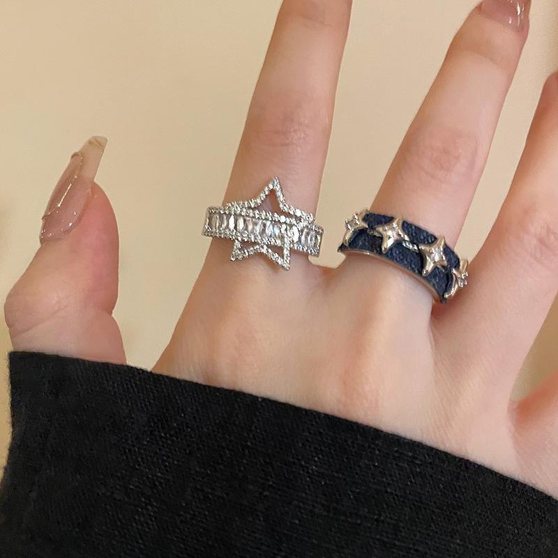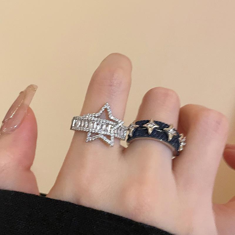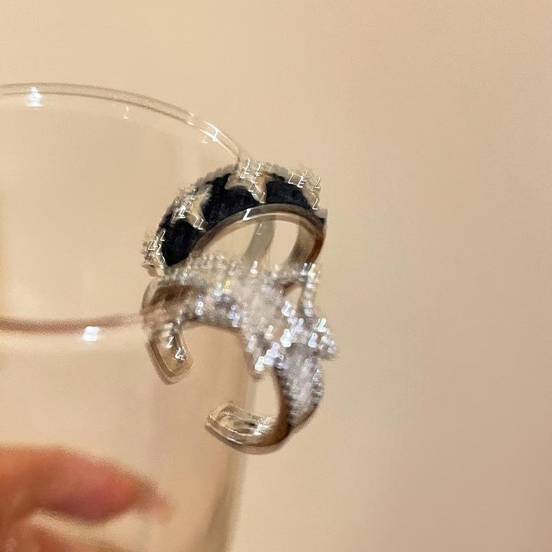 Anel aberto de zircônia estrela feminino outono e inverno luz luxo alta moda brincos distintos design de nicho anel de casal