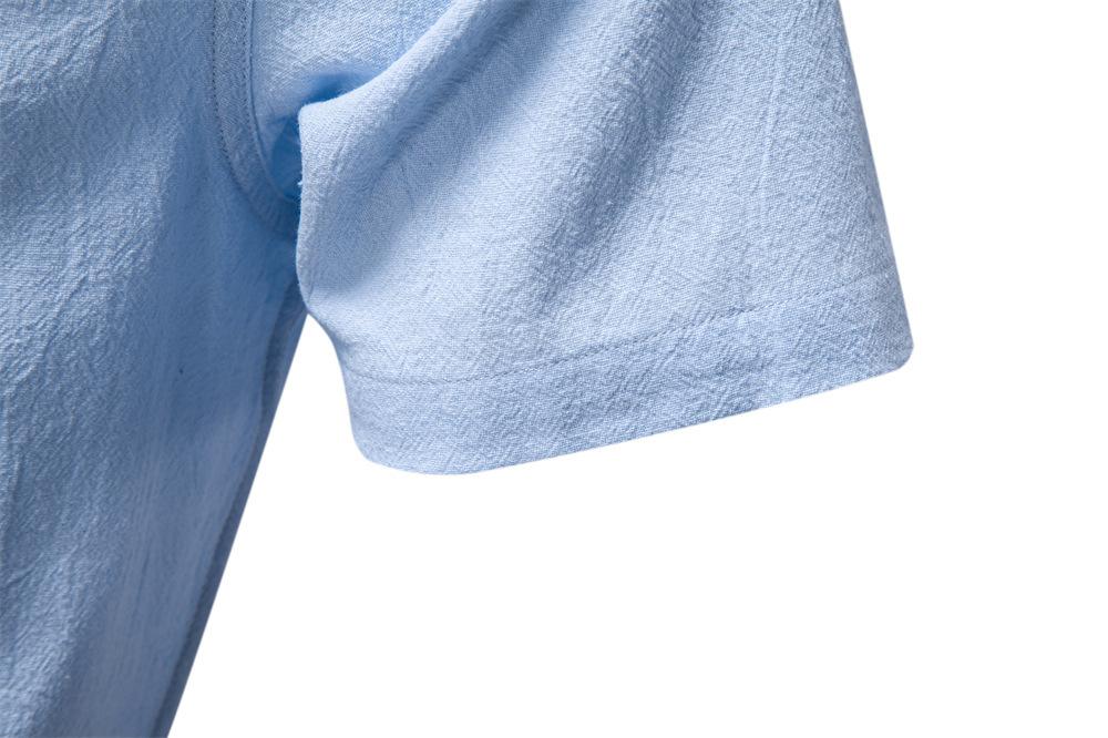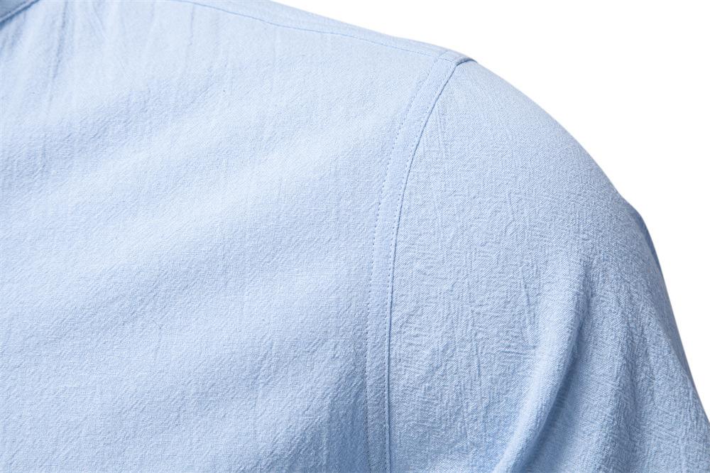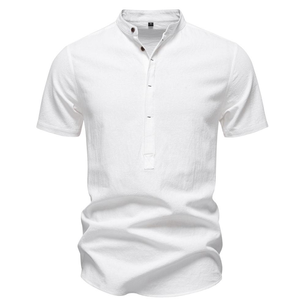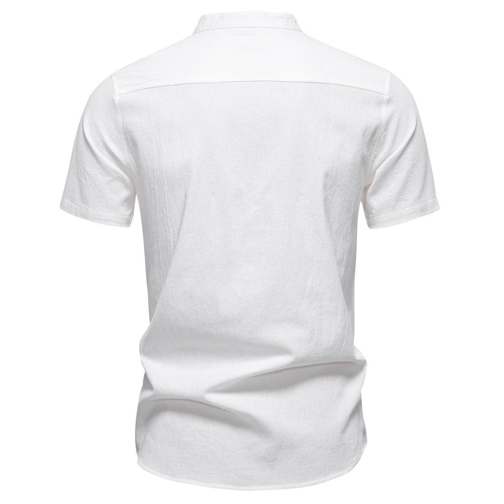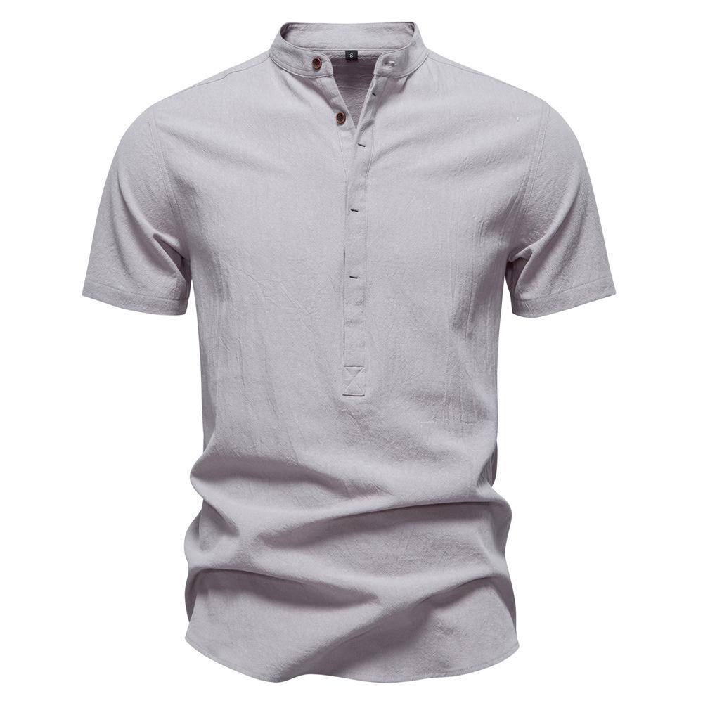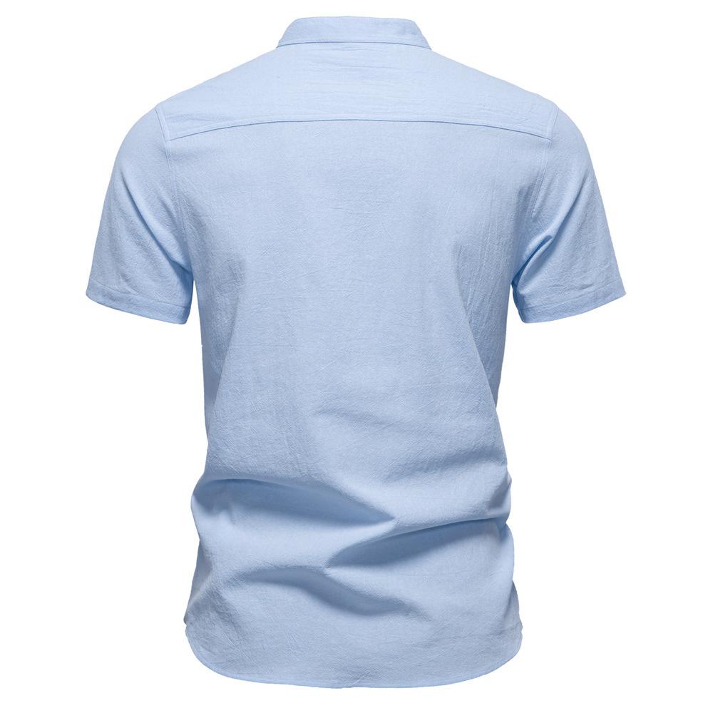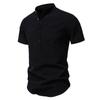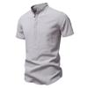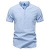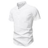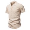 2025 Verão Nova Camisa Casual de Negócios Transfronteiriços Camisa Masculina de Manga Curta de Algodão e Linho Camisa de Gola de Algodão Camisa Masculina