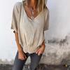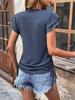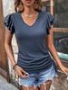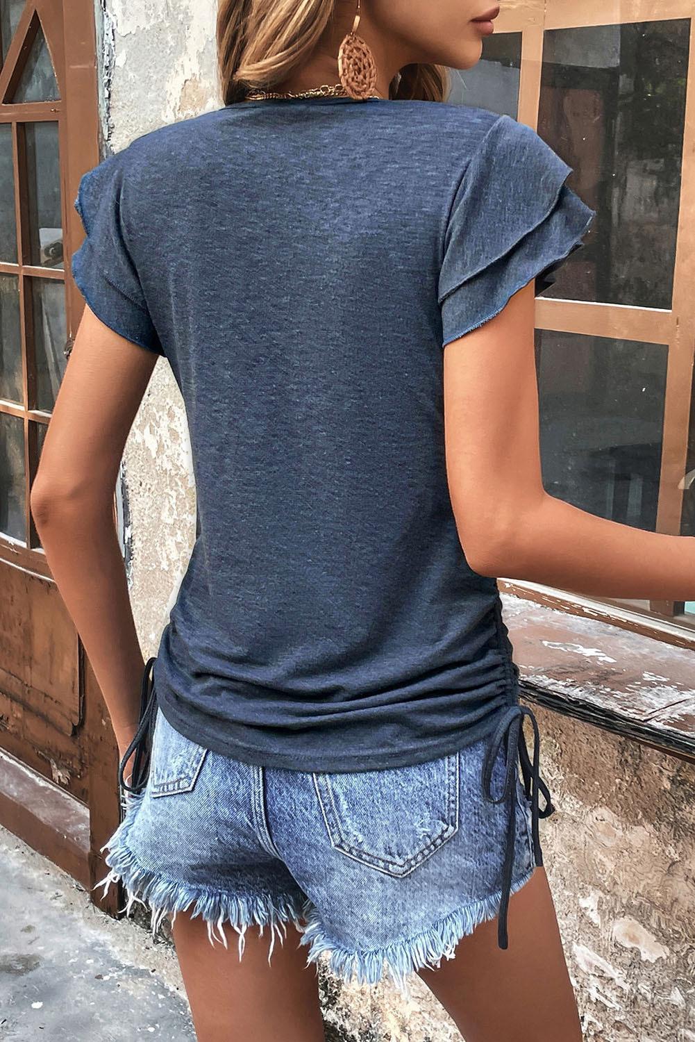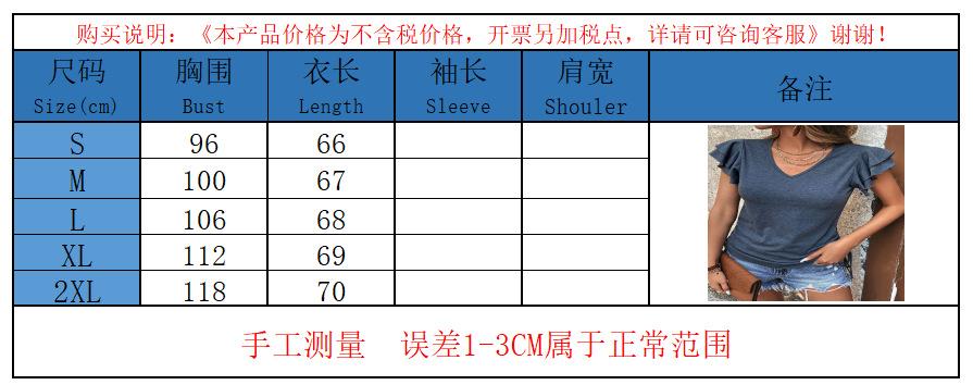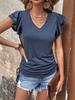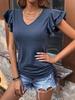 Camiseta feminina transfronteiriça europeia e americana 2025 Amazon verão nova cor sólida decote em V camada dupla manga com babados top solto