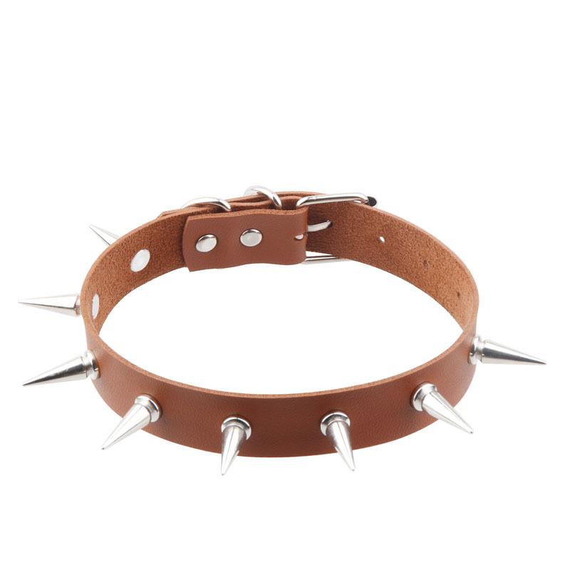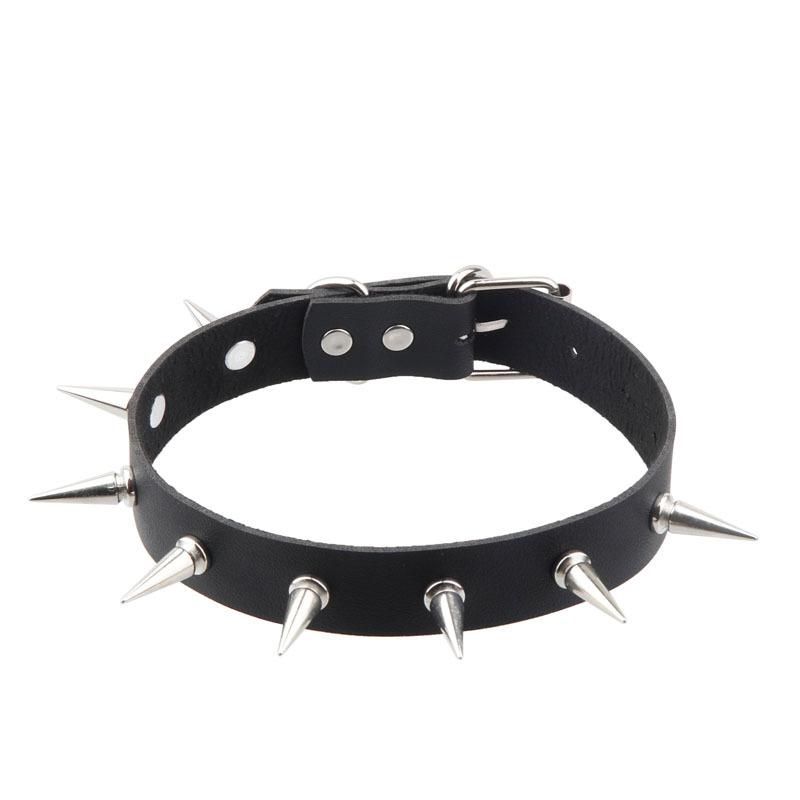 Nome do Produto:Gótico Sombrio Europeu e Americano Transfronteiriço Estilo Harajuku Colar de Couro PU Exagerado Personalidade Retrô Rebite Espigão Colar Punk