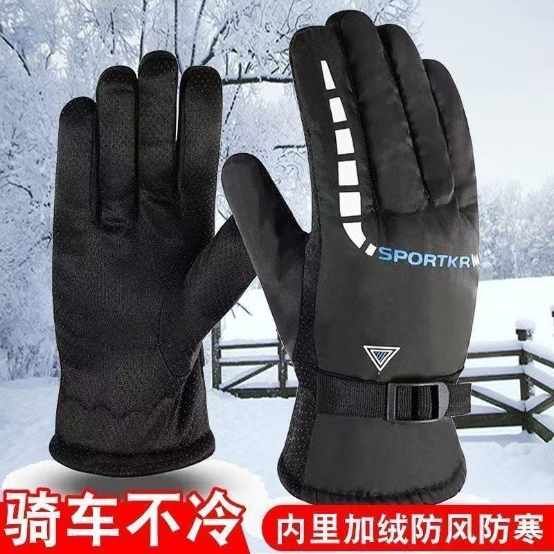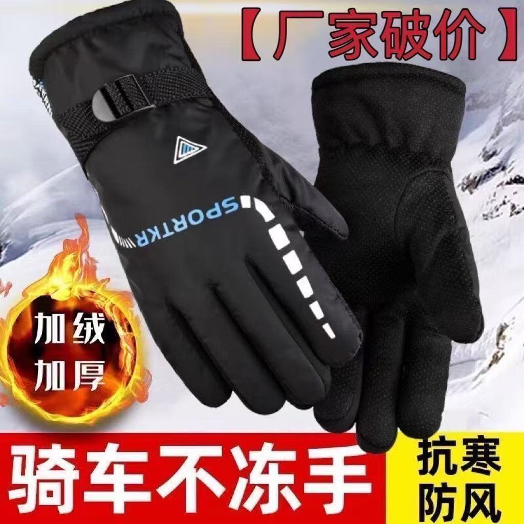 Luvas de ciclismo espessas forradas com lã de inverno, luvas quentes triangulares masculinas, luvas de ciclismo forradas com lã, à prova de frio, forradas com lã para áreas externas