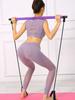 Coloque os dois anéis do bastão de Pilates sob seus pés, segure a barra horizontal com ambas as mãos, deite-se de costas no chão e, em seguida, levante as pernas. Desta forma, você pode desenvolver pernas longas.