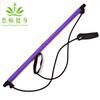Coloque os dois anéis do bastão de Pilates sob os pés, segure a barra horizontal com ambas as mãos, deite-se no chão e, em seguida, levante as pernas para cima e para baixo uma contra a outra para treinar os músculos abdominais.