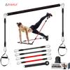 Coloque os dois anéis da barra de Pilates sob os pés, depois segure a barra horizontal com ambas as mãos e incline-se para cima, o que pode exercitar a força dos seus braços.