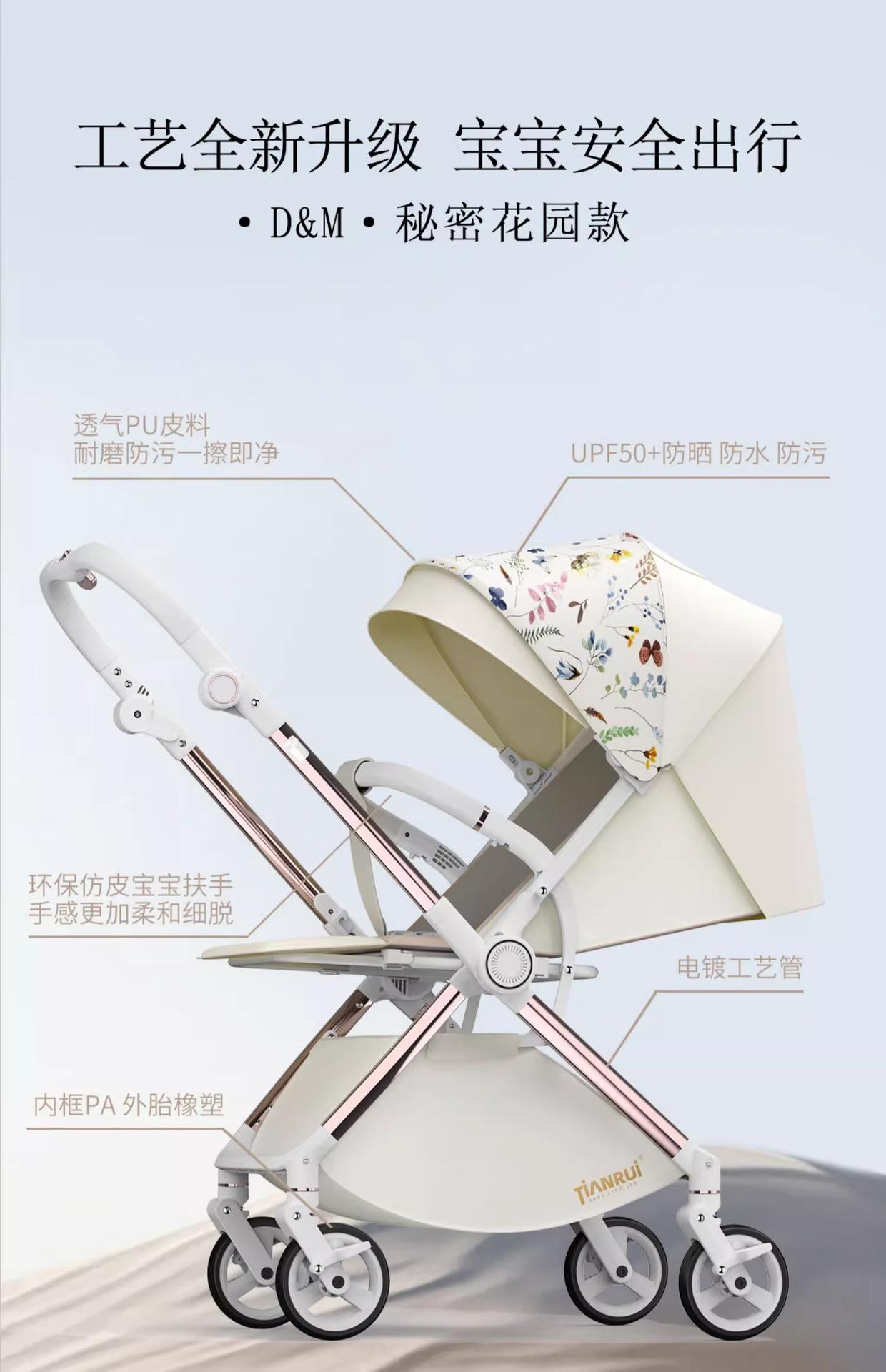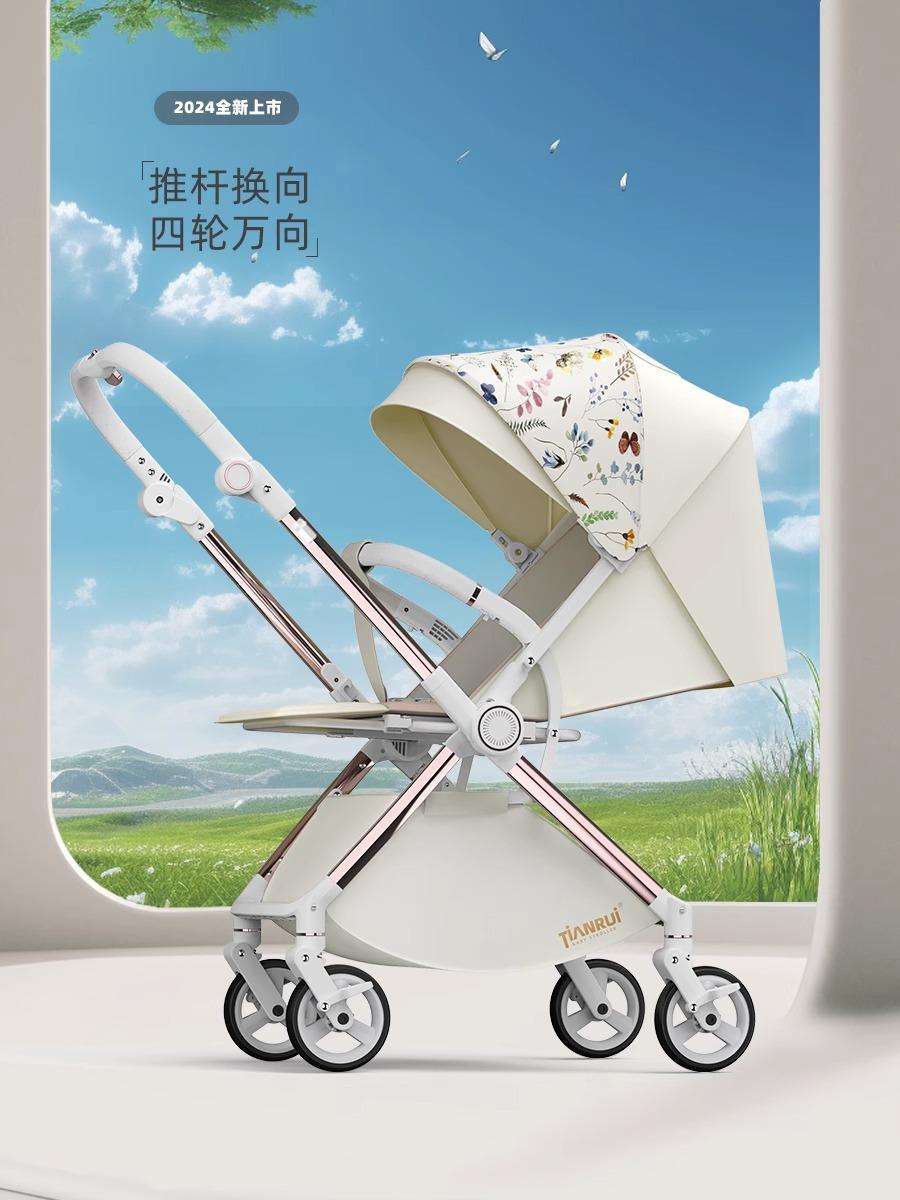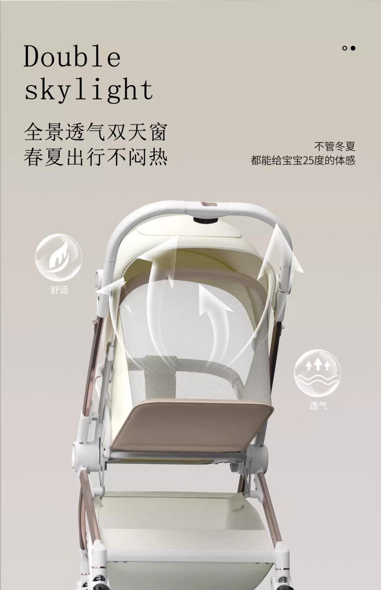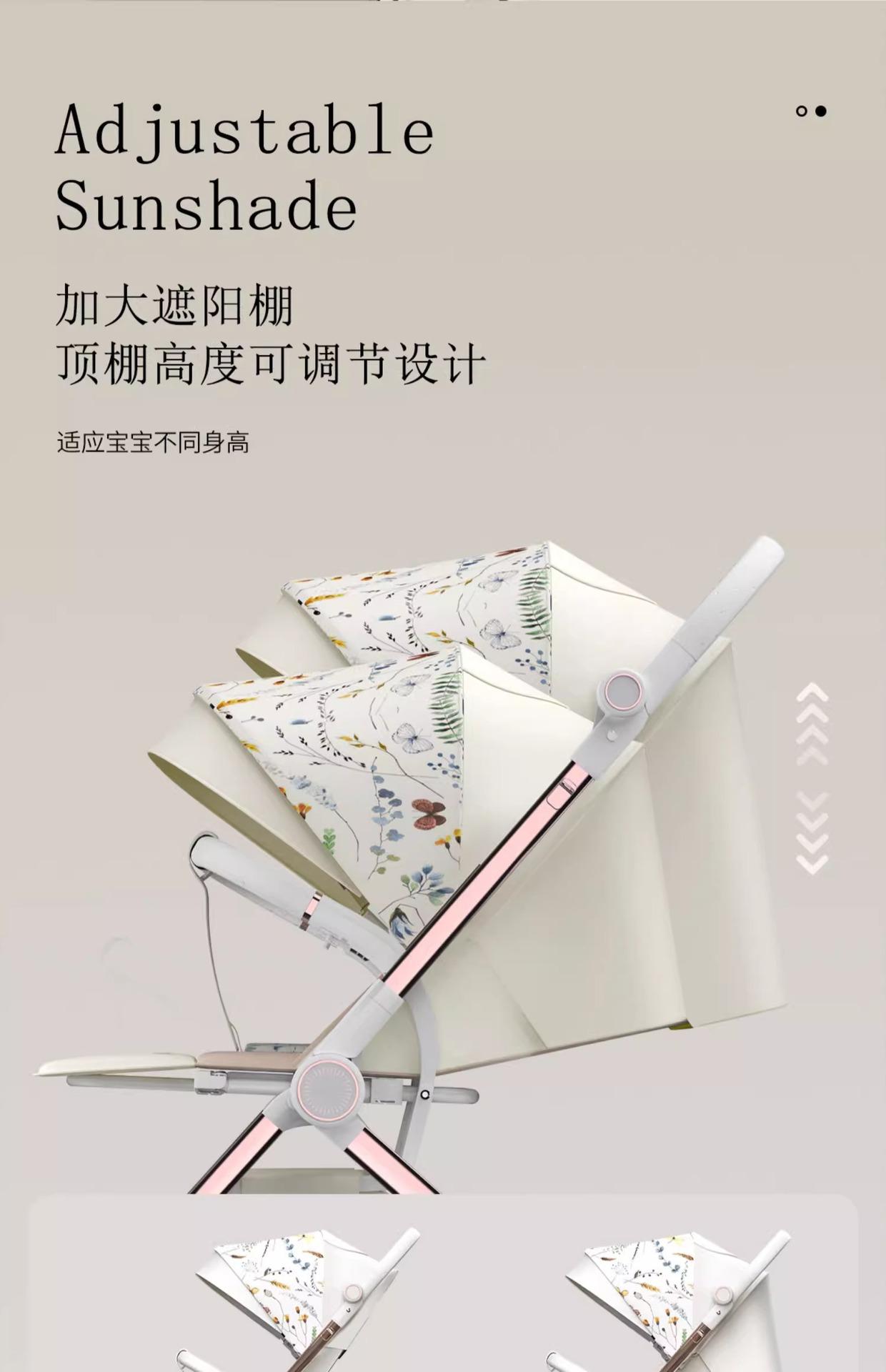Carrinho de Bebê com Visão Alta, Reversível em Duas Vias, Pode Sentar e Deitar, Carrinho Dobrável Leve, Super Carrinho de Bebê Reversível