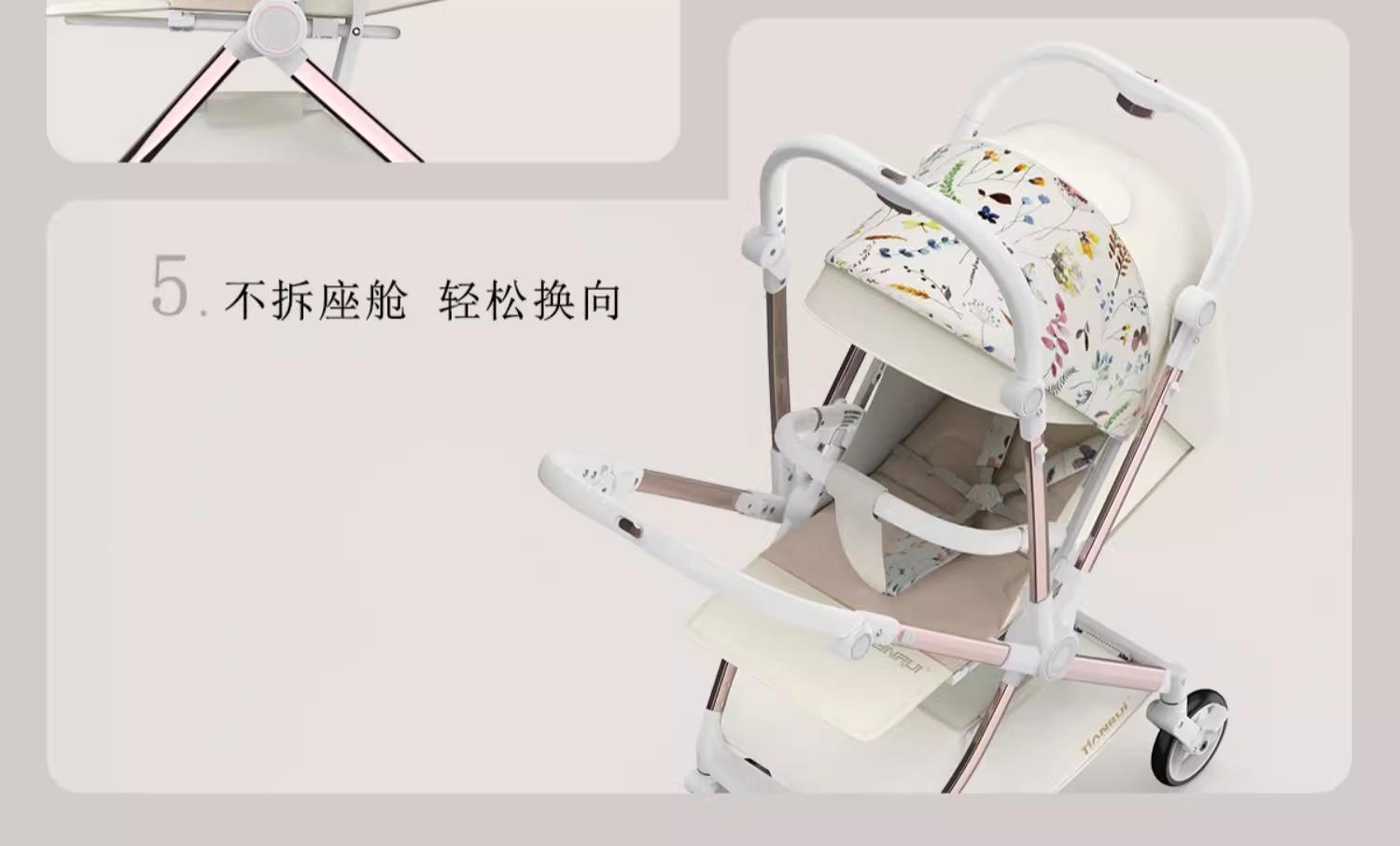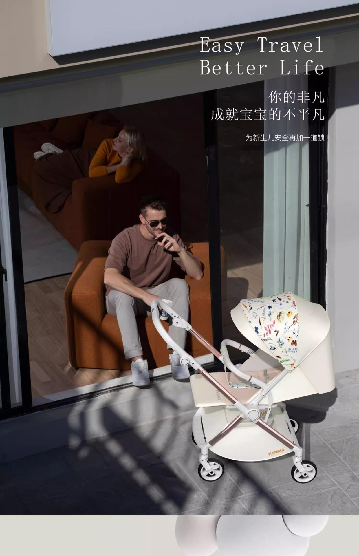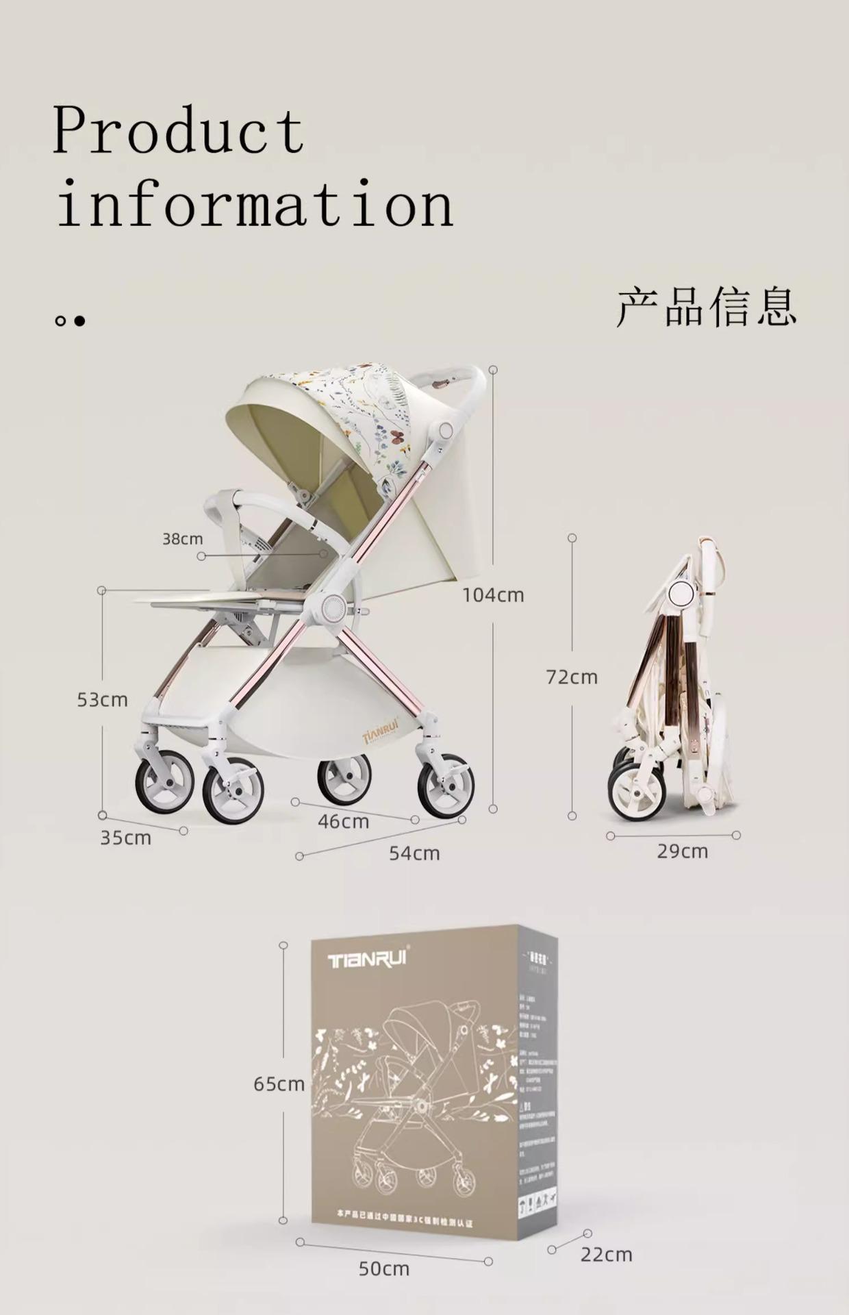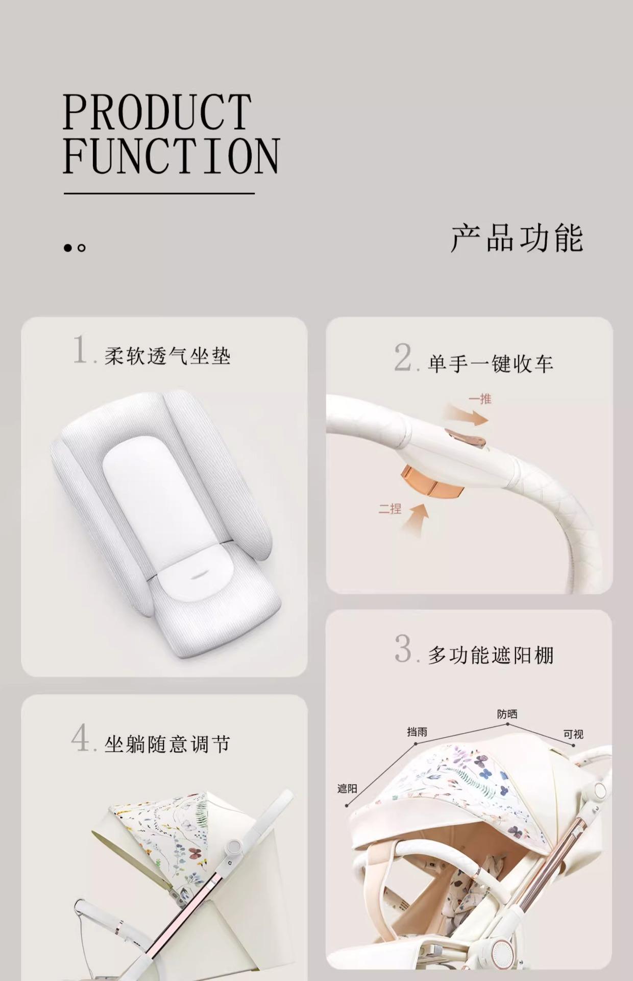 Carrinho de Bebê com Visão Alta, Reversível em Duas Vias, Pode Sentar e Deitar, Carrinho Dobrável Leve, Super Carrinho de Bebê Reversível