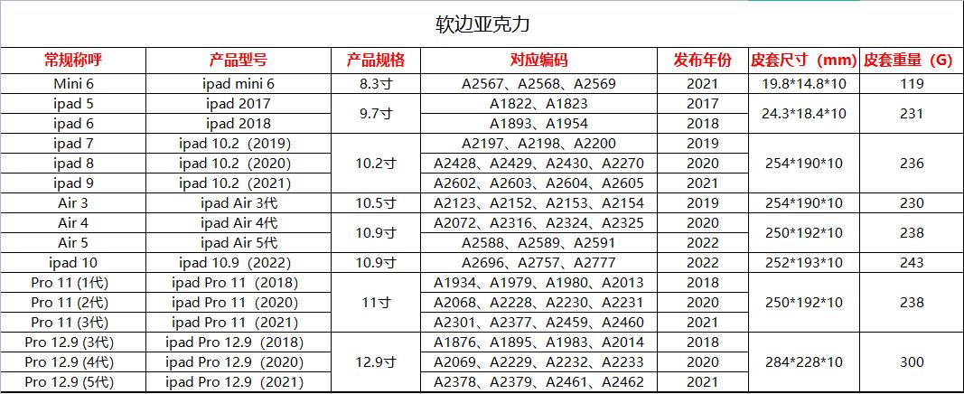 Mini 6 only, Ipad 9.7 (general), For ipad 10.2 (7/8/9th generation), Special for ipad 10.5 (air3), Air 4/5 10....