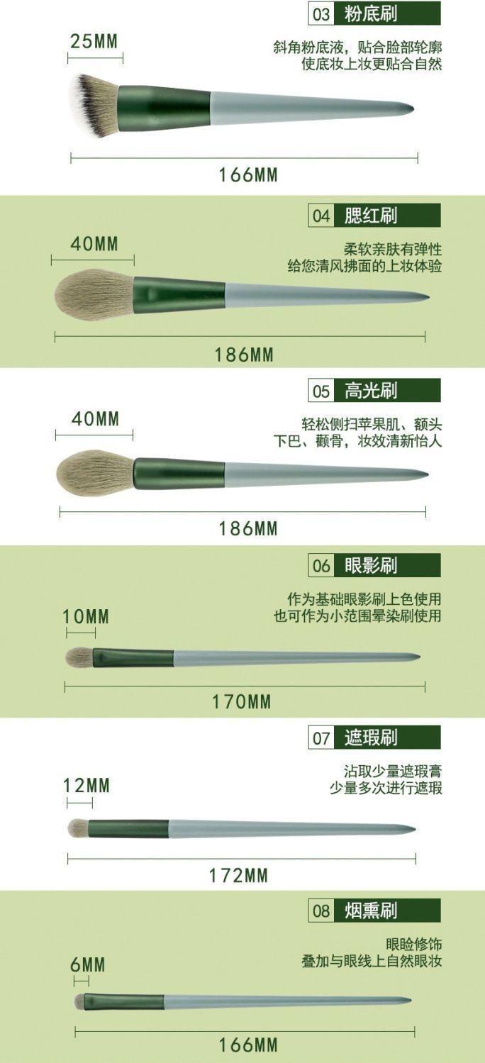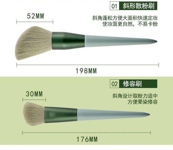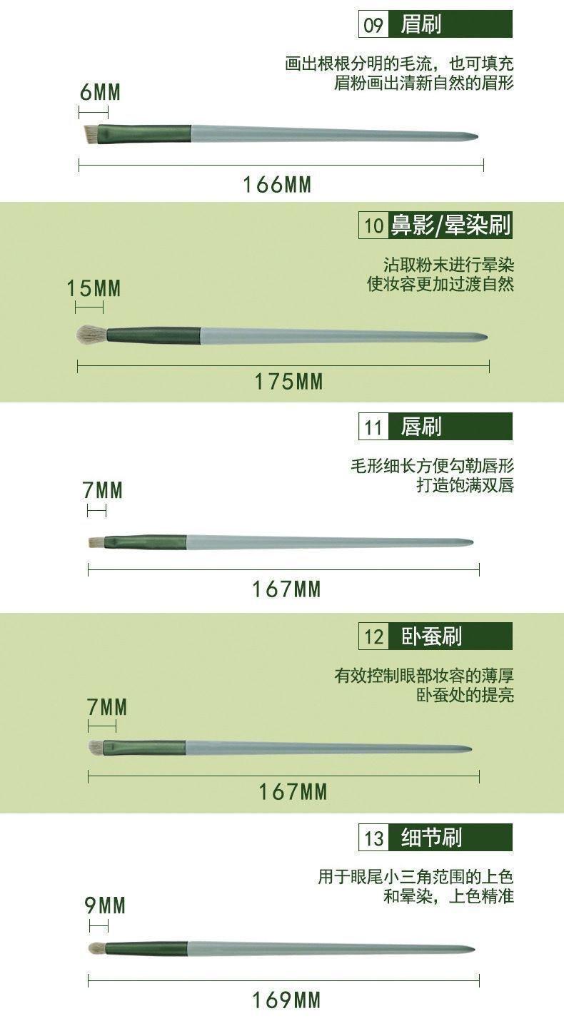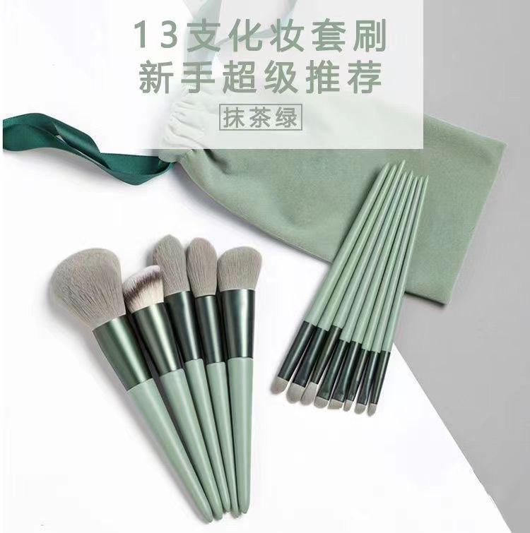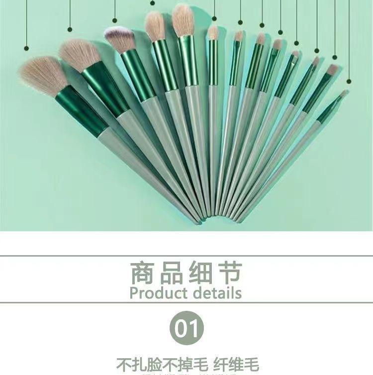 13 Conjunto completo de pincéis de maquiagem, verde quatro estações, pó solto de cerdas macias, pincel para sombra, contorno de base, blush de alto brilho, pincel para corretivo em estoque