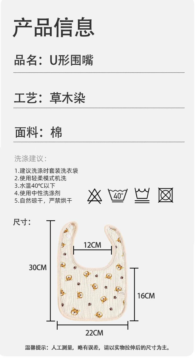 Toalha de Saliva de Bebê Gaze de Algodão Puro Babador de Bebê Recém-Nascido Babador em Forma de U Primavera e Outono