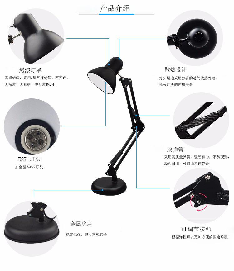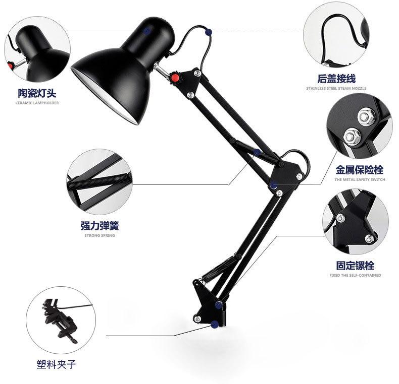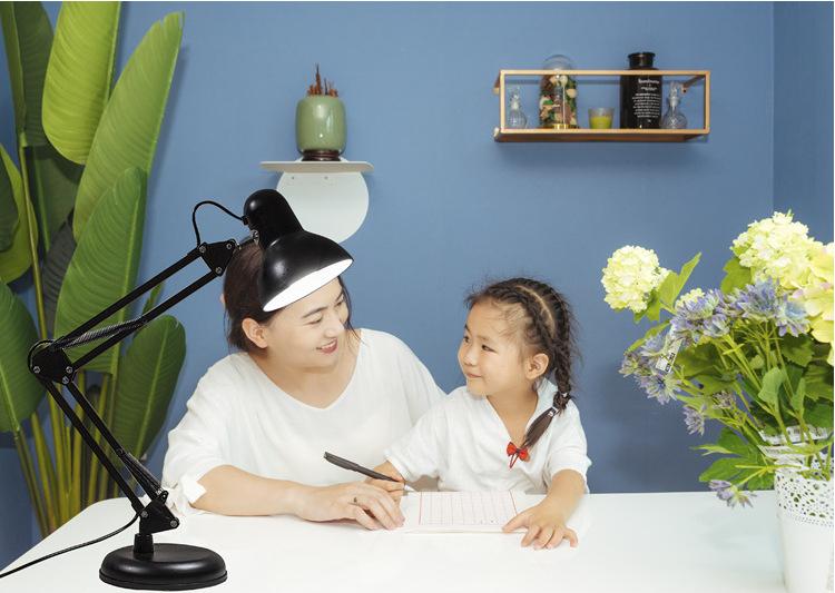 Luminária de mesa americana LED de ferro dobrável com proteção para os olhos, luminária de mesa para aprendizagem e leitura, com clipe de braço longo, atacado