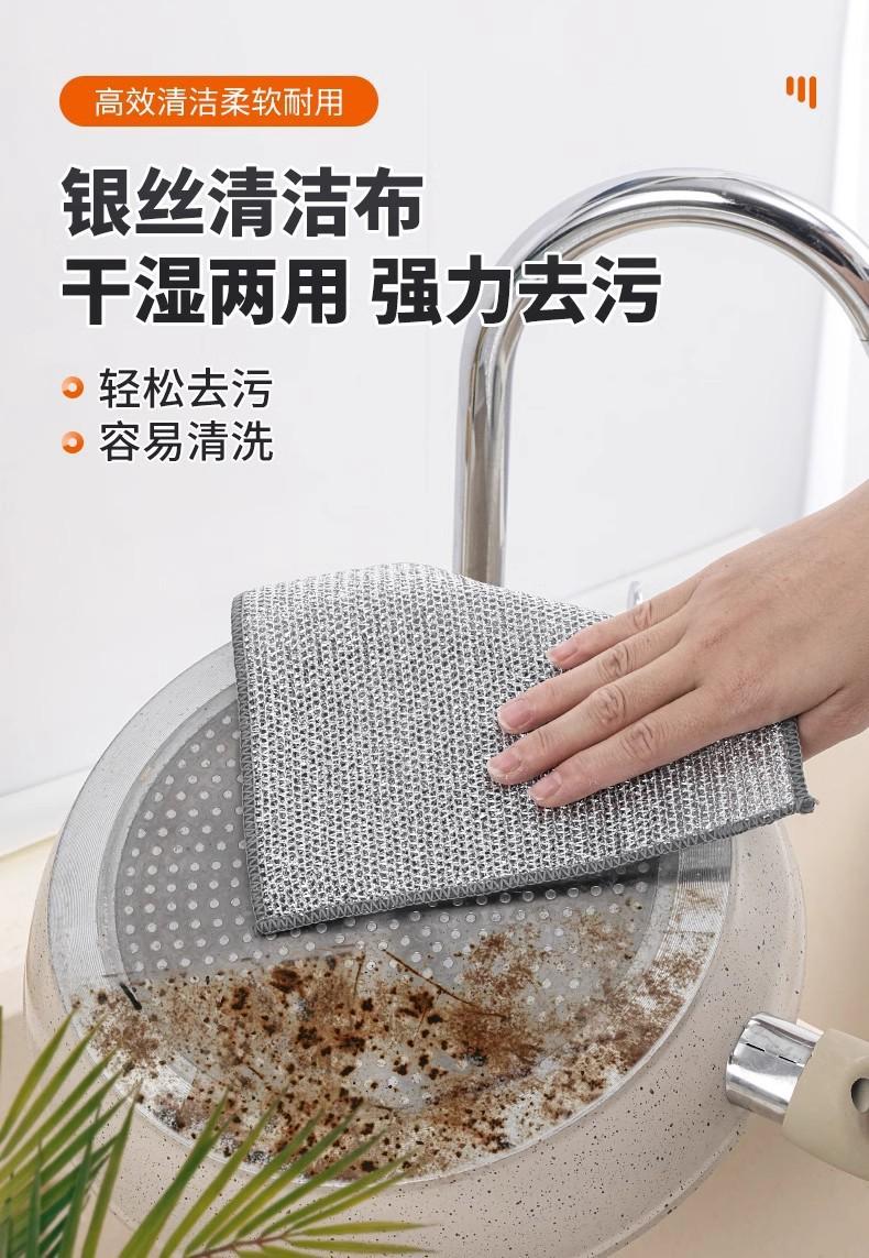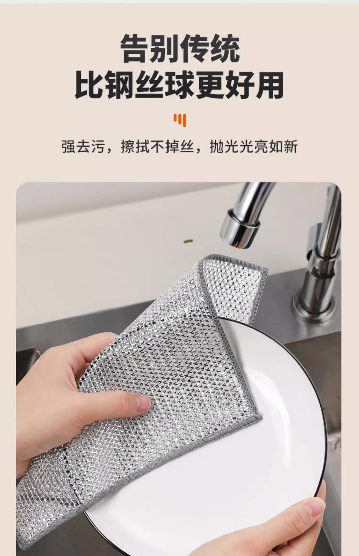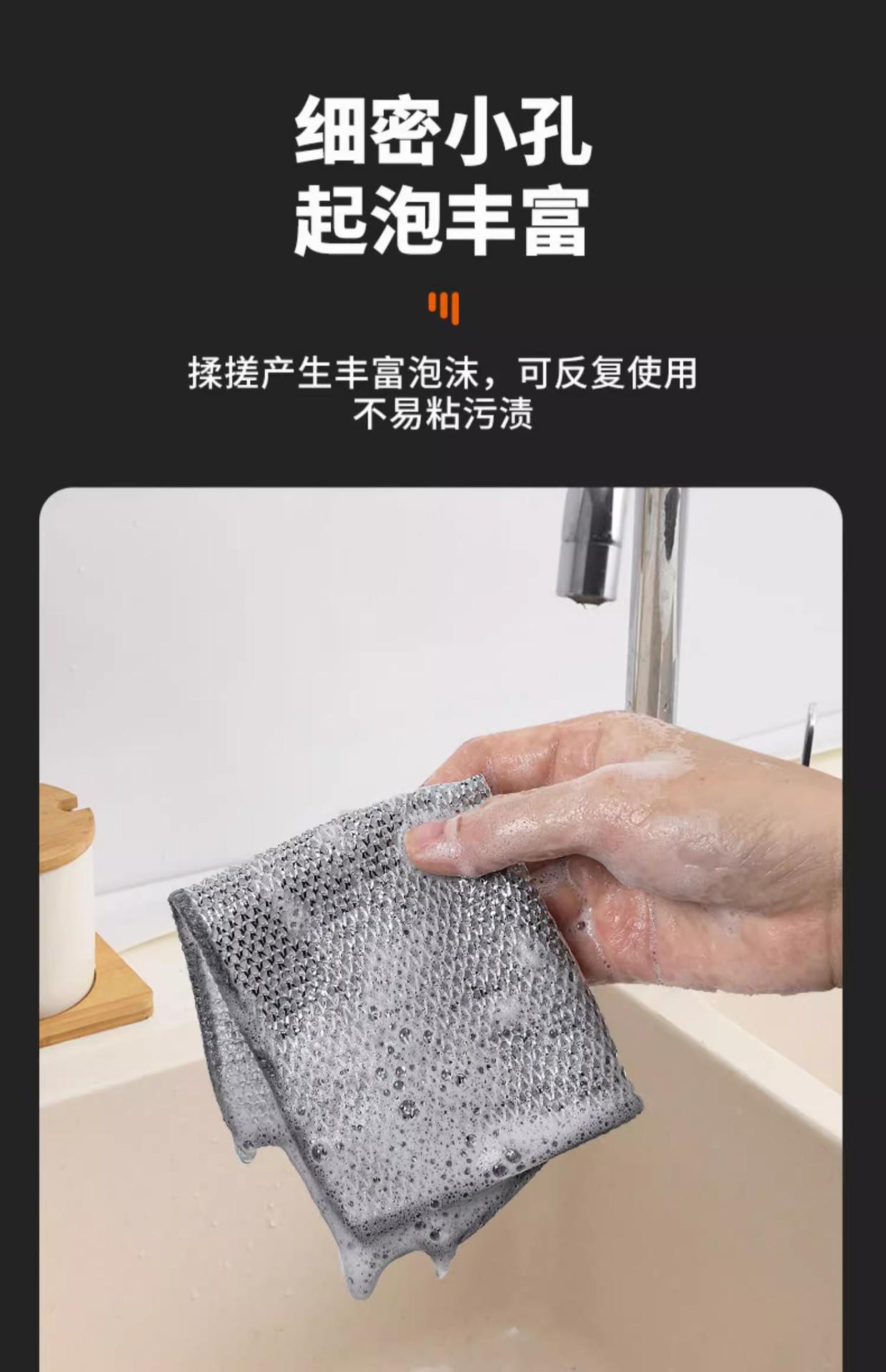 Pano de Prato de Fio de Prata Transfronteiriço, Pano de Lavar Louça de Fio de Aço, Alternativa às Bolas de Palha de Aço, Esponja de Cozinha de Camada Dupla, Ferramenta Mágica para Remoção de Manchas