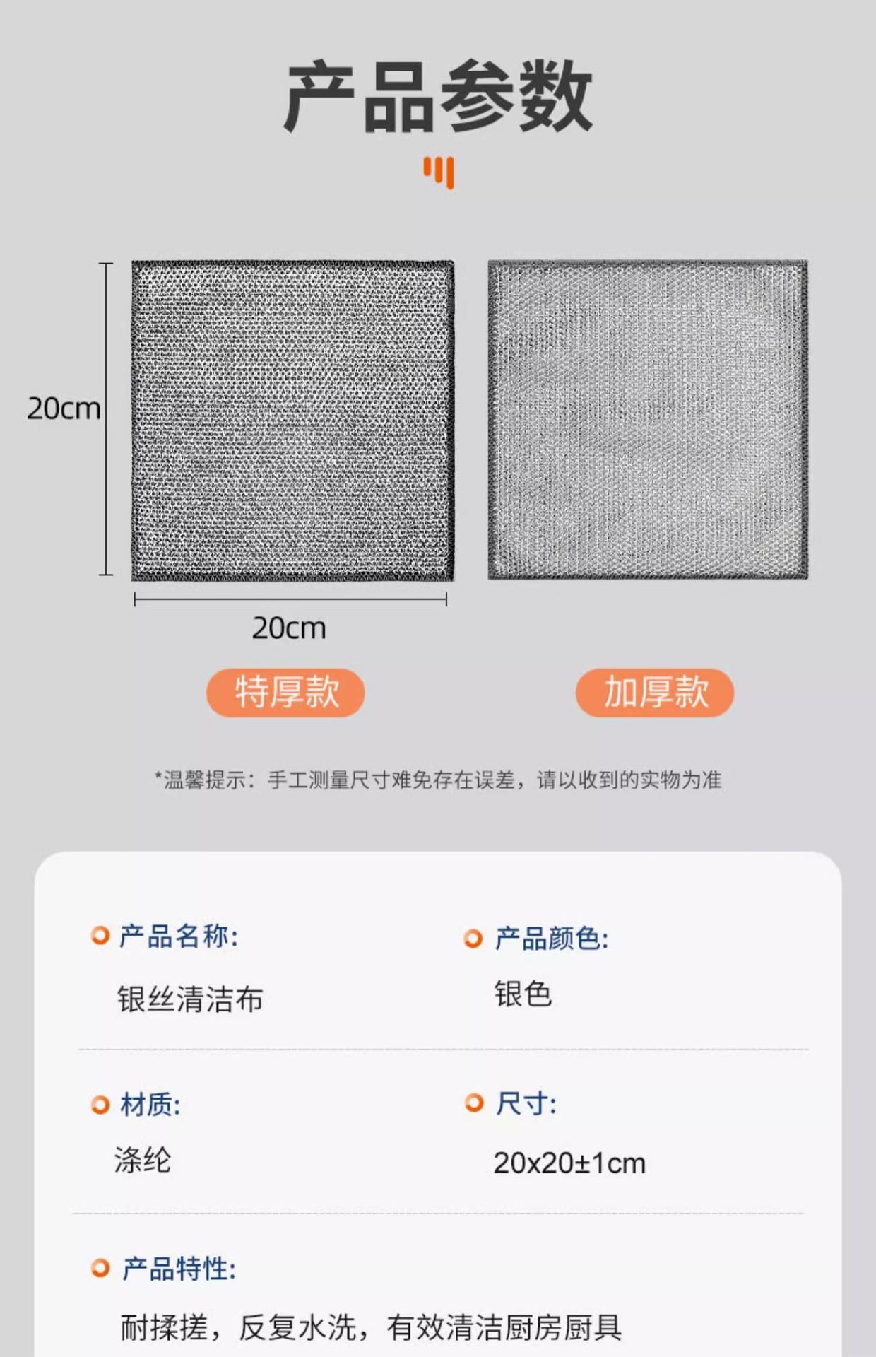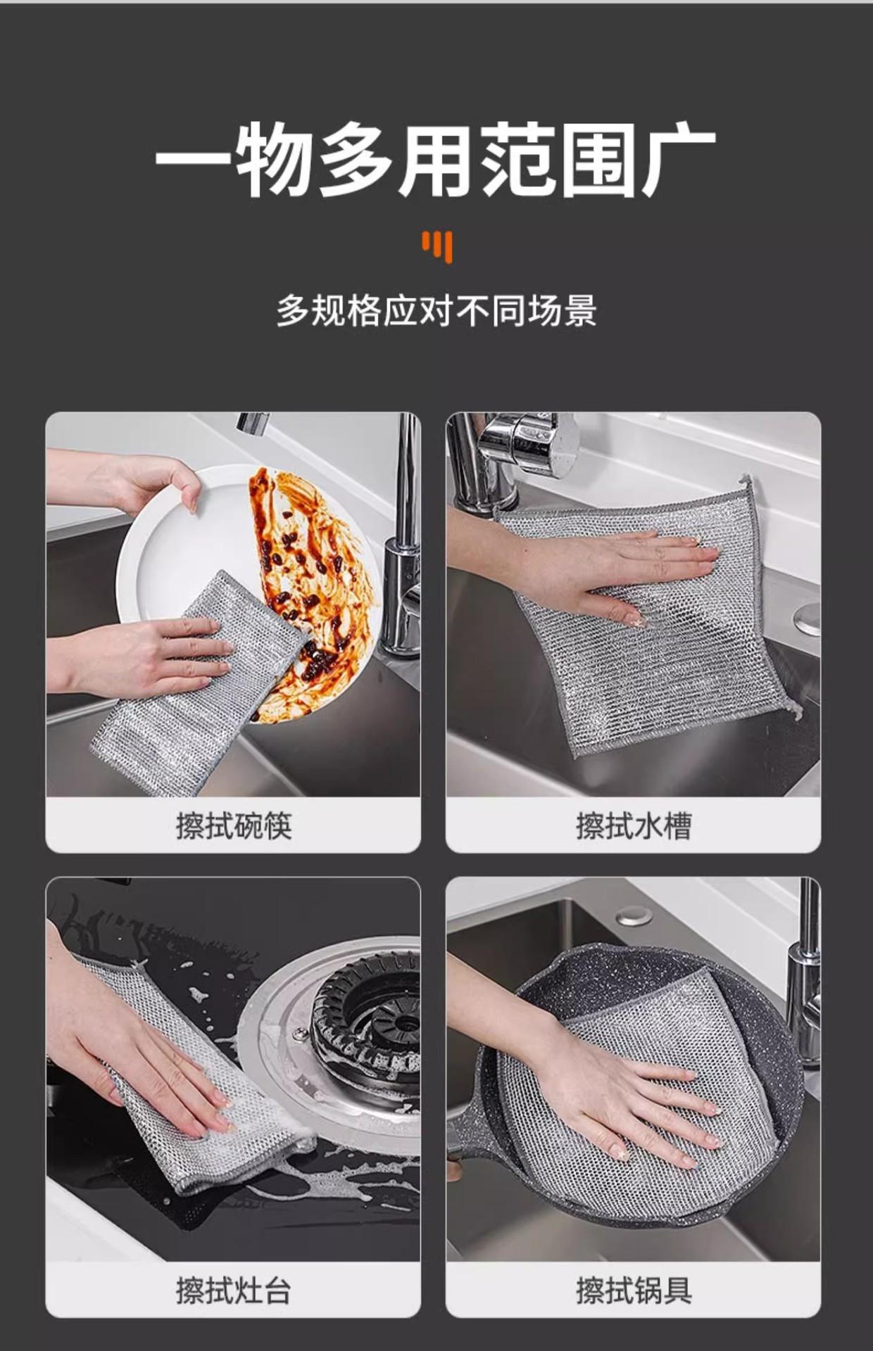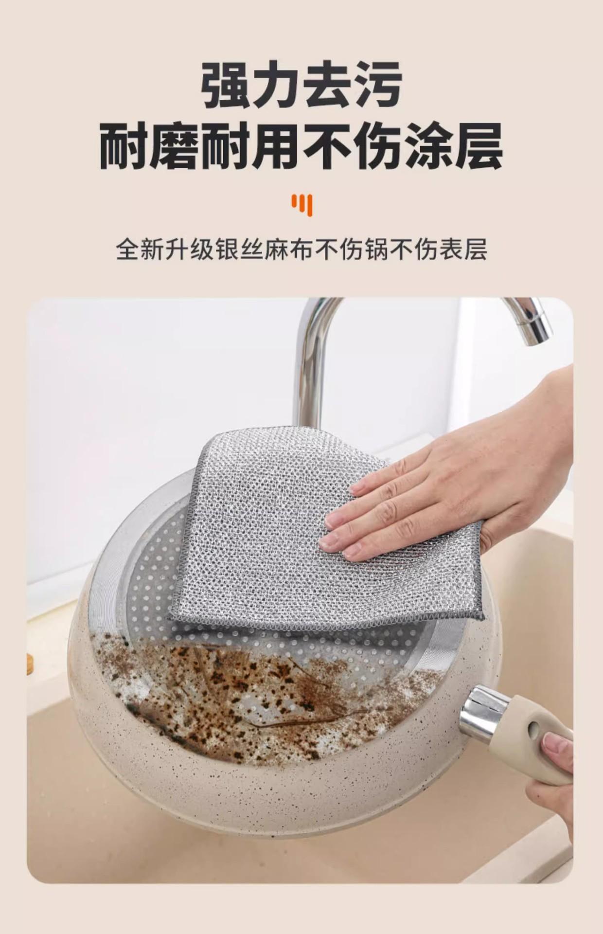 Pano de Prato de Fio de Prata Transfronteiriço, Pano de Lavar Louça de Fio de Aço, Alternativa às Bolas de Palha de Aço, Esponja de Cozinha de Camada Dupla, Ferramenta Mágica para Remoção de Manchas