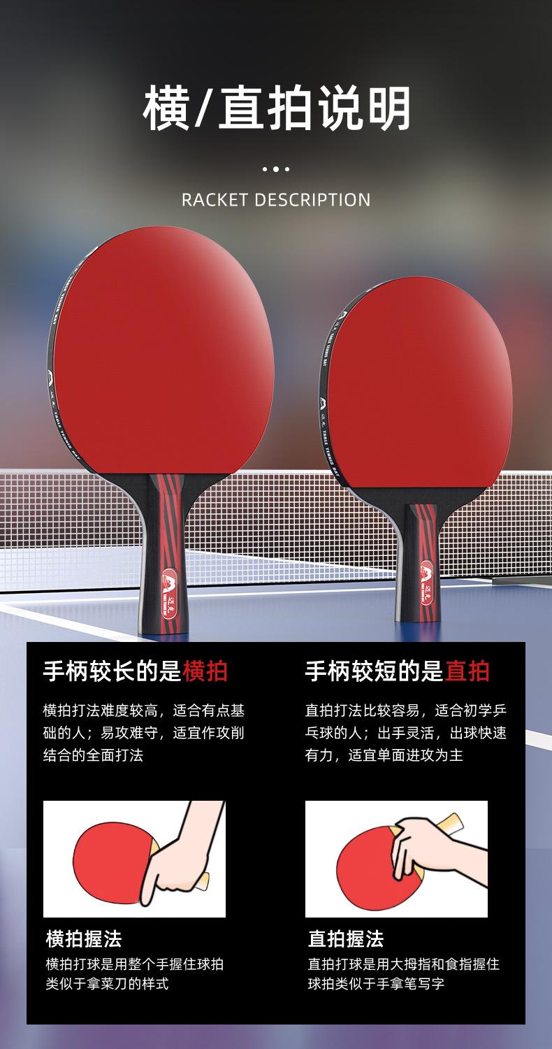 Tacos de tênis de mesa para alunos do ensino fundamental, crianças, iniciantes, profissional, terno de tênis de mesa, bastão reto, cabo longo, cabo curto