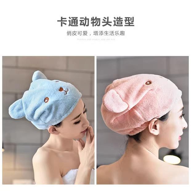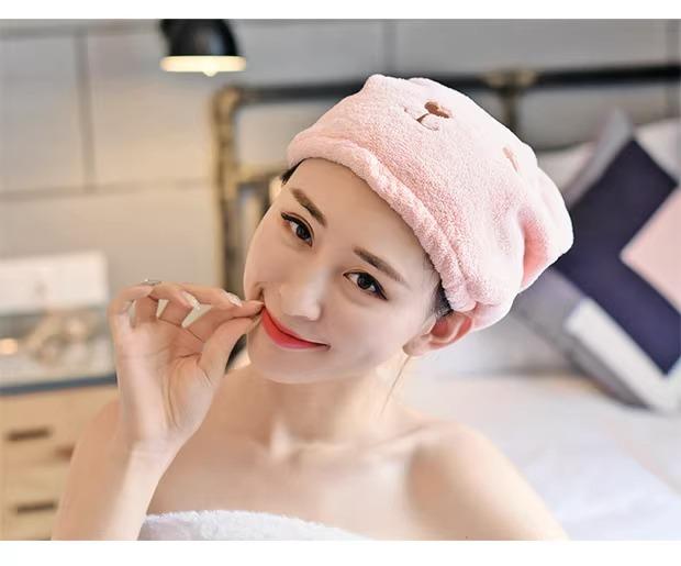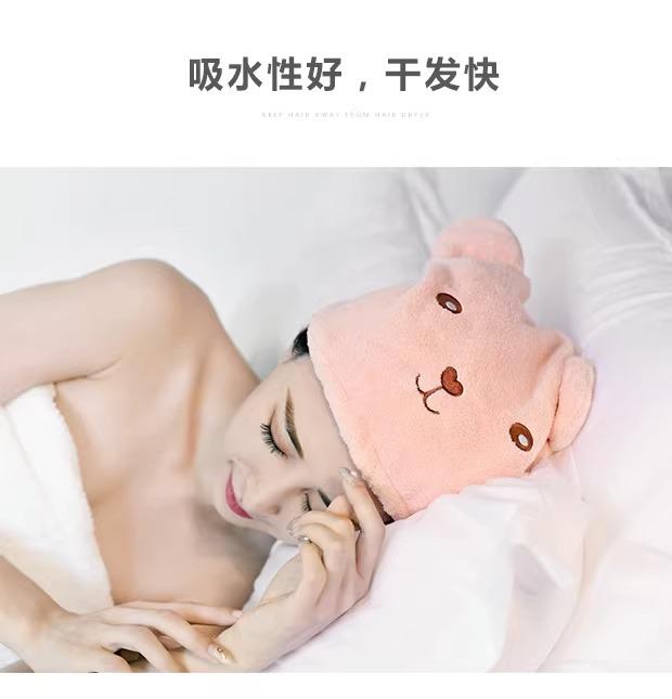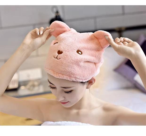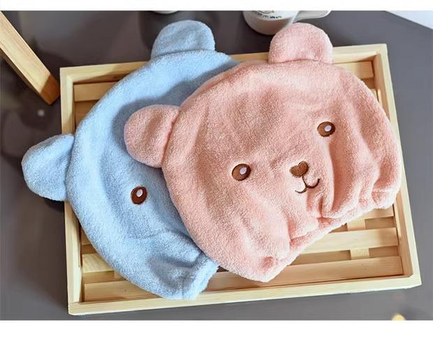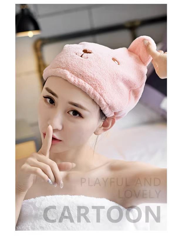 Compre Gorro de secado de pelo con diseño de oso bordado para mujer, superabsorbente, de secado rápido, toalla para lavar el cabello, gorro de ducha con dibujos animados, nuevo no atacado no Joom.pro