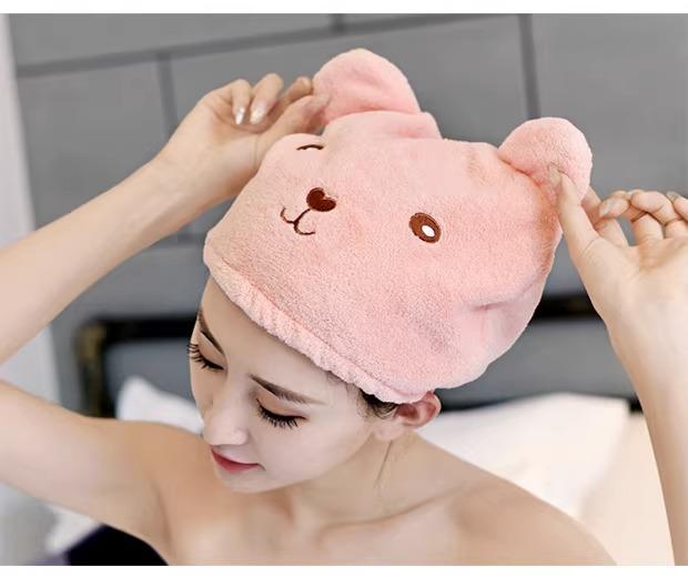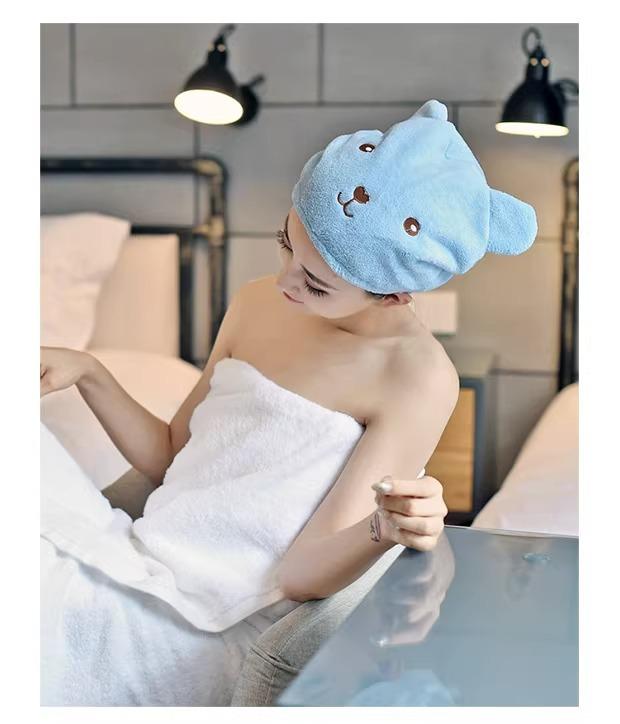 Gorro de secado de pelo con diseño de oso bordado para mujer, superabsorbente, de secado rápido, toalla para lavar el cabello, gorro de ducha con dibujos animados, nuevo