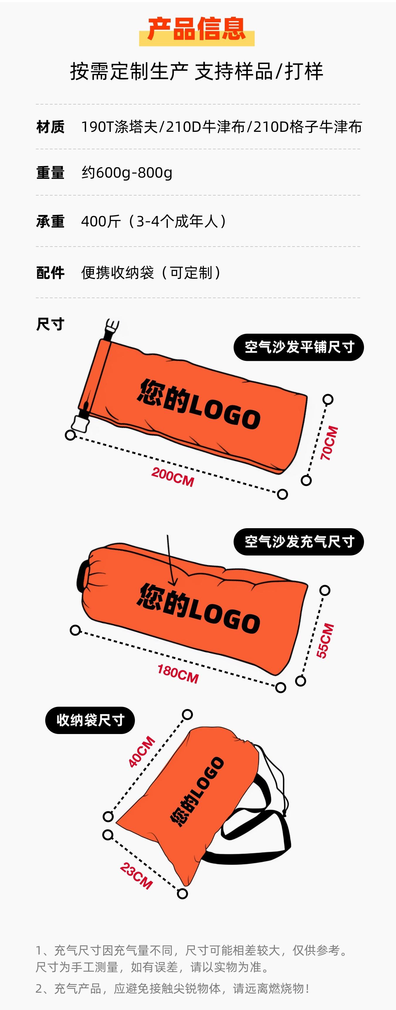 Novo sofá inflável transfronteiriço, festival de música preguiçoso, sofá dobrável com almofada dupla, poltrona reclinável portátil para pausa para almoço