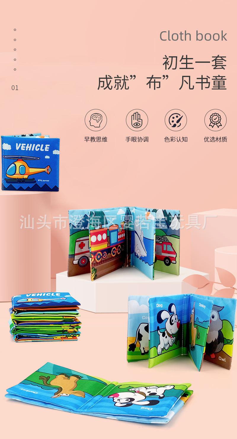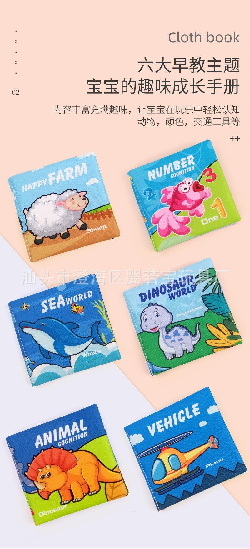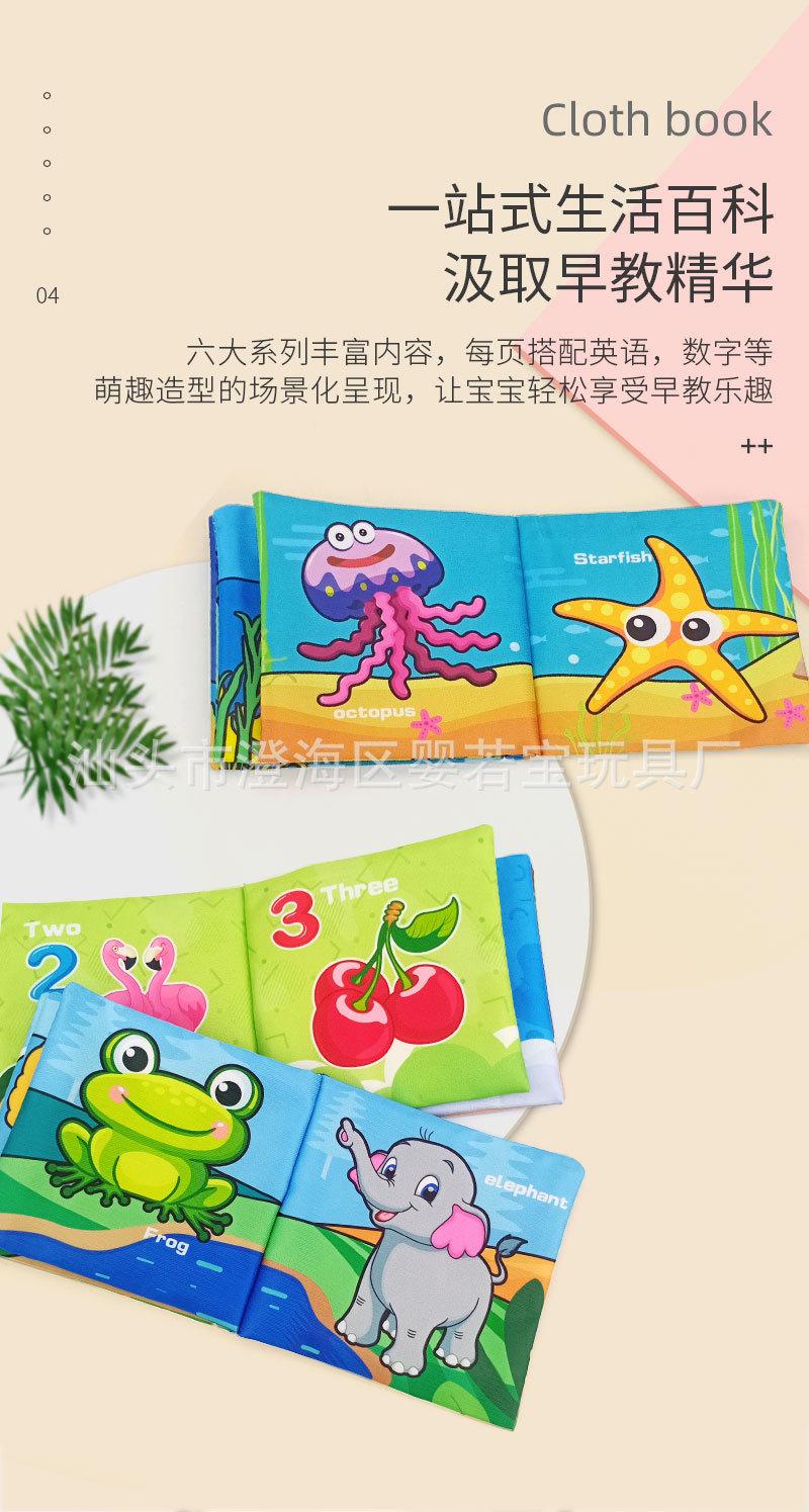 Livro de Pano Transfronteiriço Livro de Educação Infantil para Bebês Brinquedos Impermeável Banho com Papel Sonoro Livro de Pano Resistente a Rasgos Conjunto de Livros de Pano para Bebês