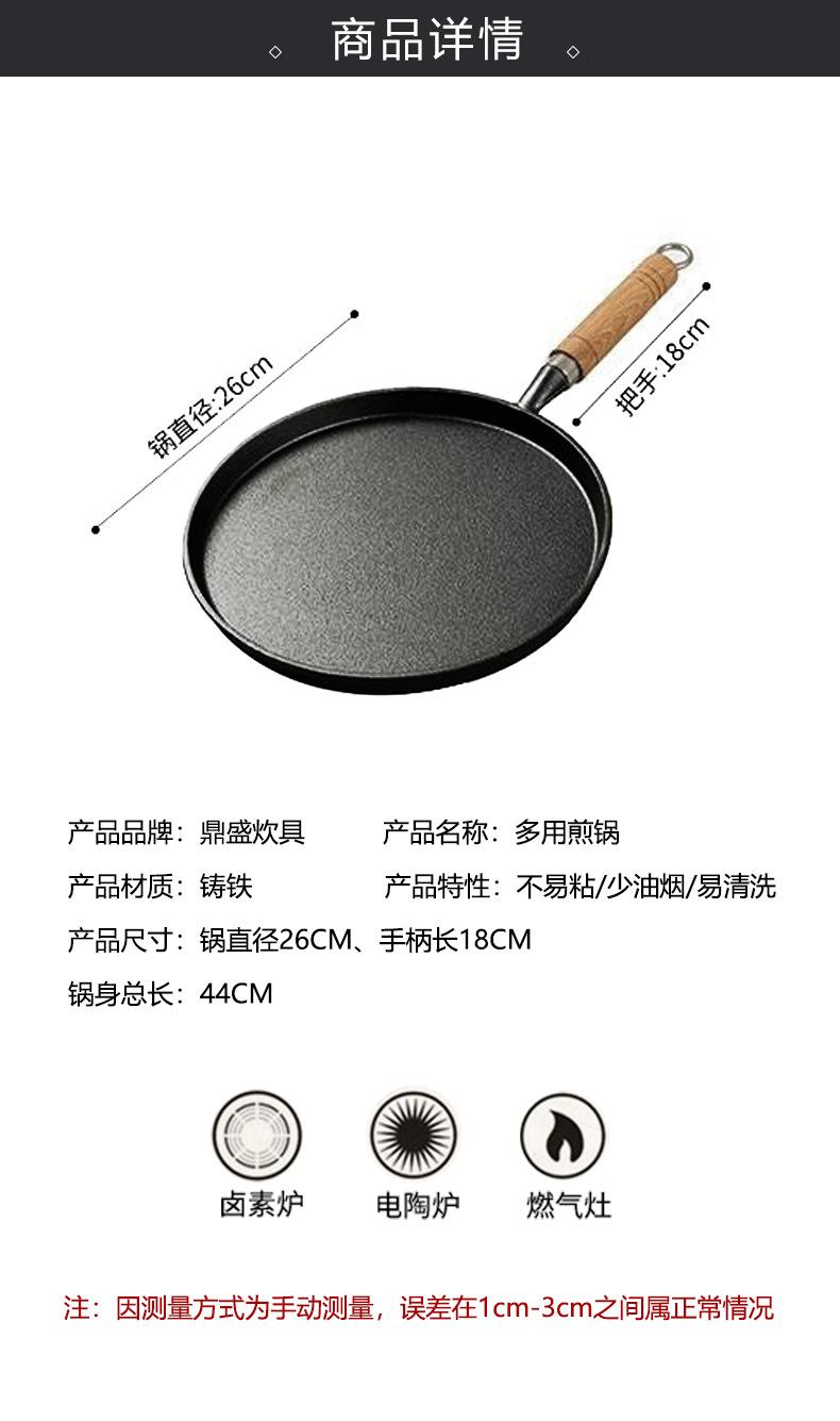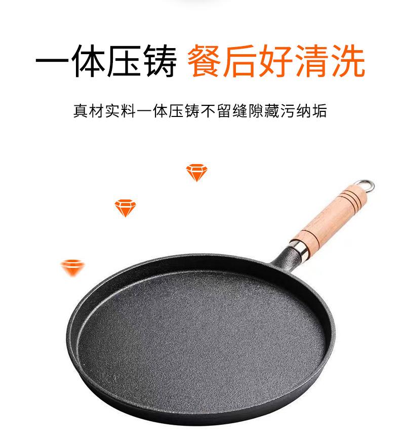 Frigideira Doméstica de Ferro Fundido Antiaderente para Panquecas Frigideira para Panquecas com Cabo para Segurar à Mão Fabricante Atacado Multiuso Omelete
