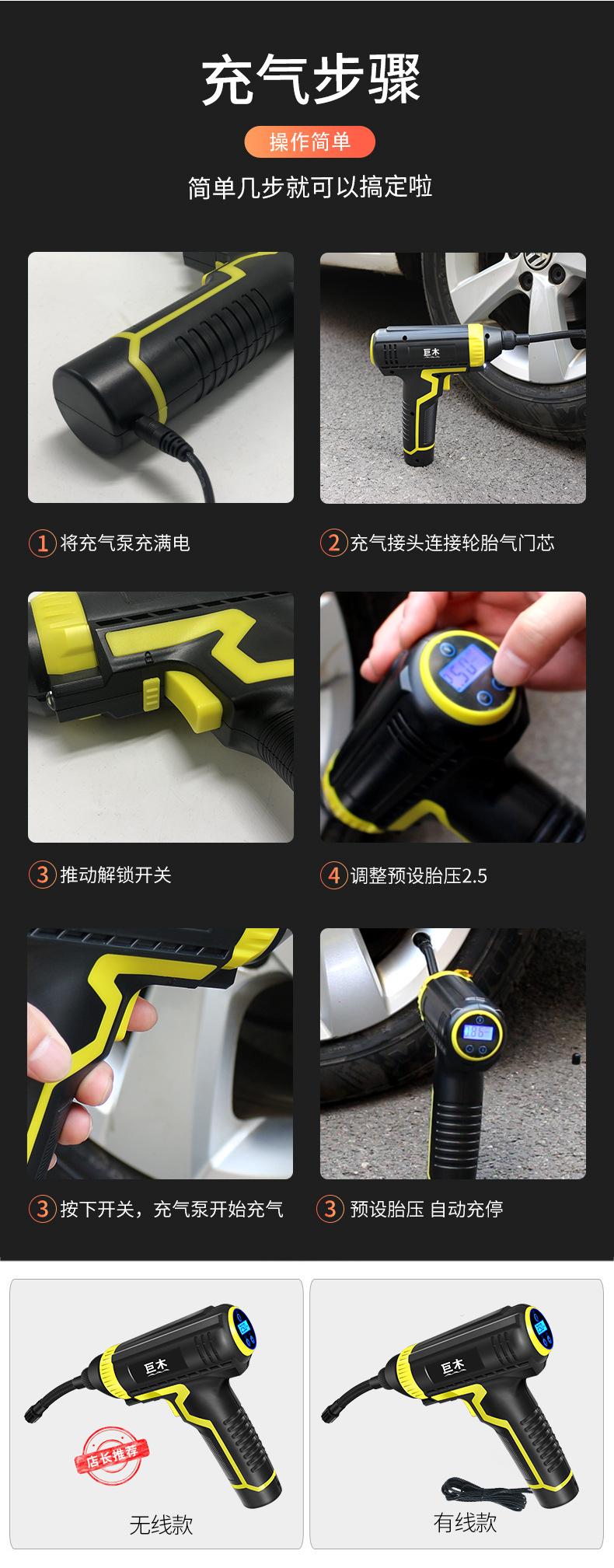 Compre Bomba de ar portátil para carro, bomba de ar para pneu de carro elétrica sem fio, com display digital inteligente no atacado no Joom.pro