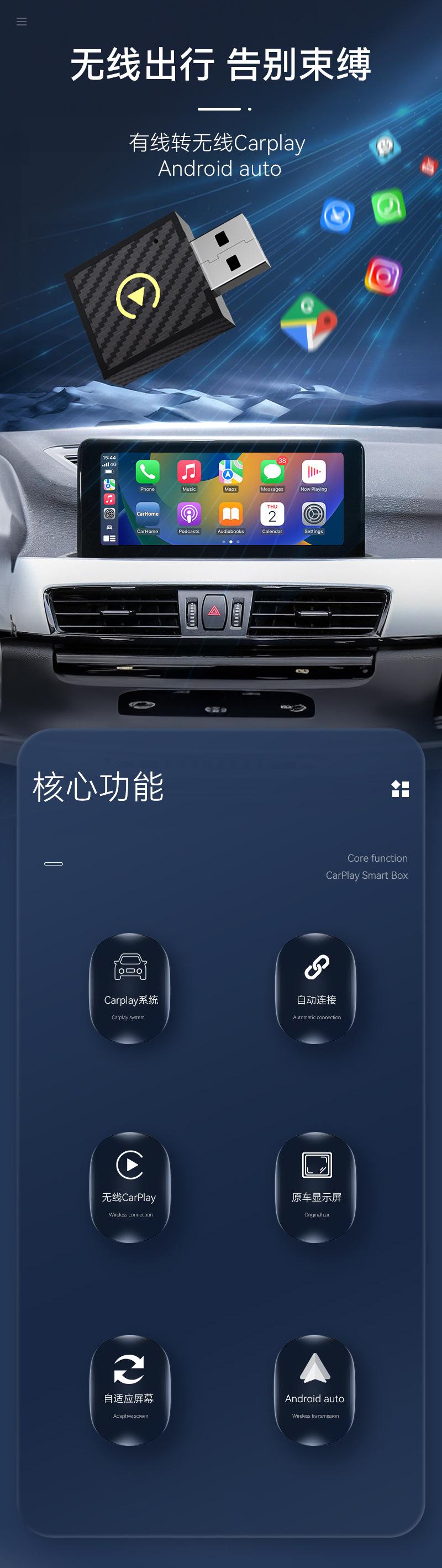 Q1w wireless carplay plus android auto 2-in-1 only adapts to overseas systems