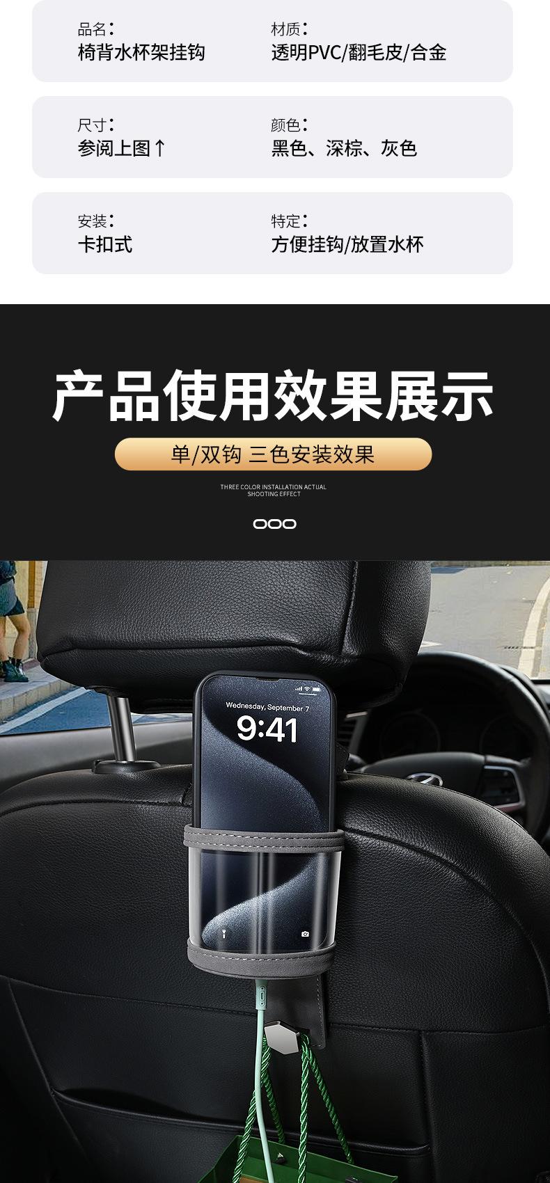Gancho para assento de carro, suporte para copos de água, assento traseiro, gancho para encosto de cabeça, caixa de armazenamento multifuncional