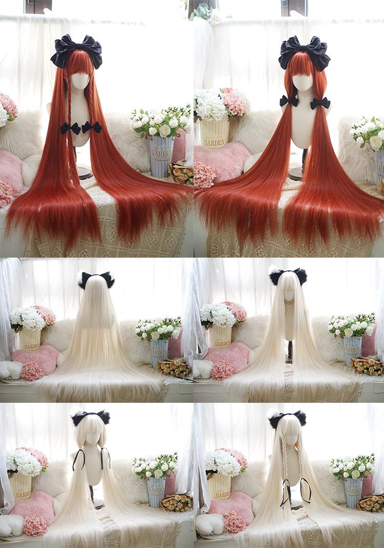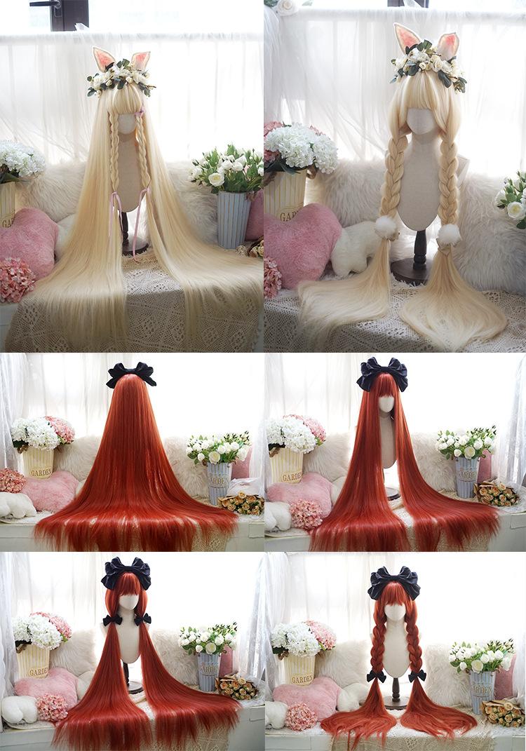 Peruca Super Longa de 120cm Cabelo Liso Longo Laranja Dourado Peruca Lolita Peruca Anime de Princesa Cobertura Completa Atacado