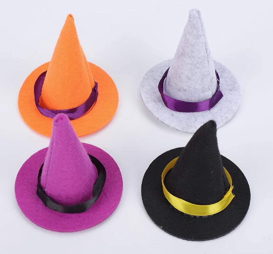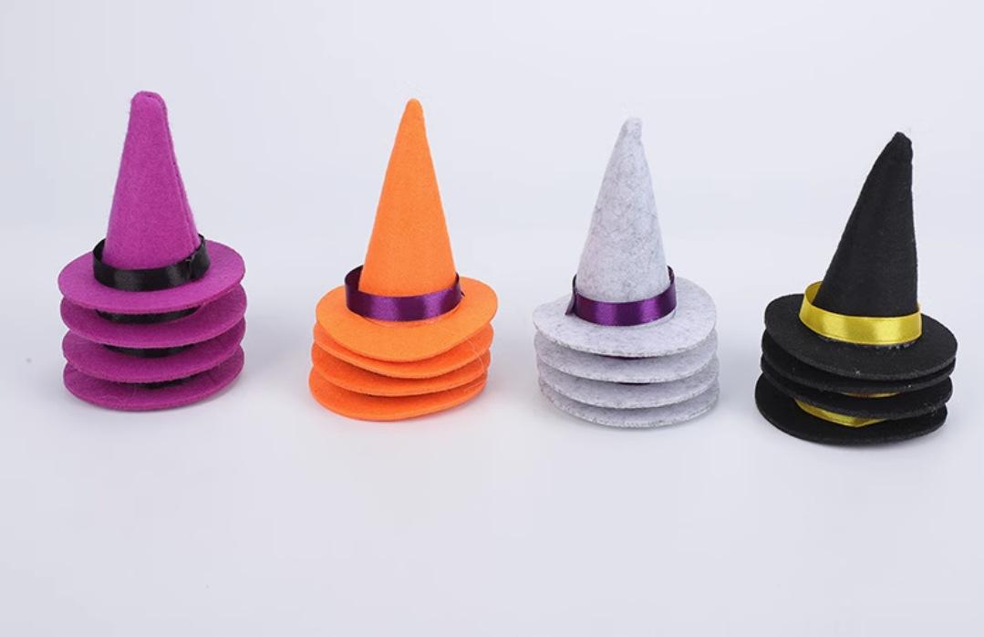 Compre Mini Chapéu de Bruxa Halloween Tricolor Chapéu de Bruxinha Transfronteiriço Criativo Decoração de Garrafa de Vinho Chapéu de Bruxa de Feltro no atacado no Joom.pro