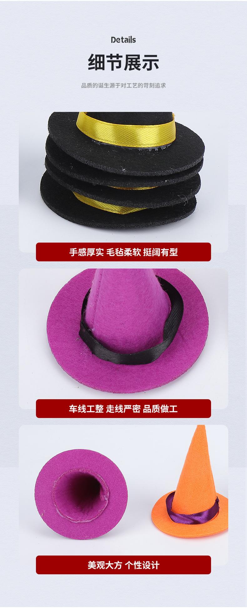 Mini Chapéu de Bruxa Halloween Tricolor Chapéu de Bruxinha Transfronteiriço Criativo Decoração de Garrafa de Vinho Chapéu de Bruxa de Feltro