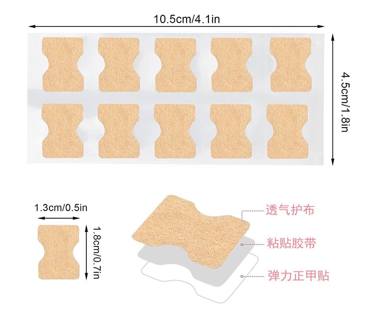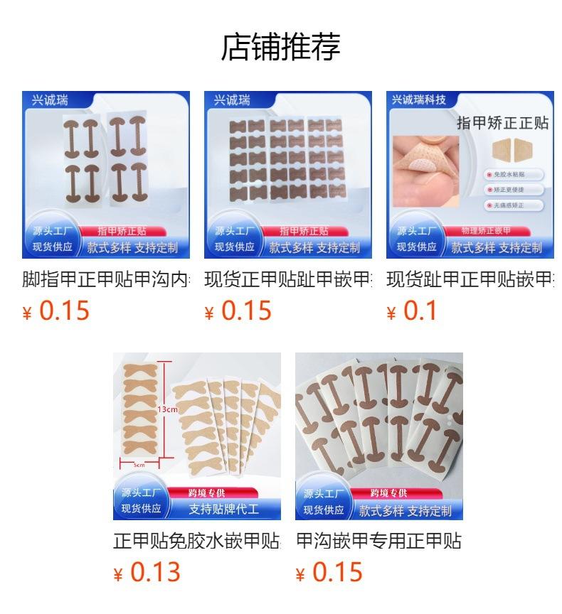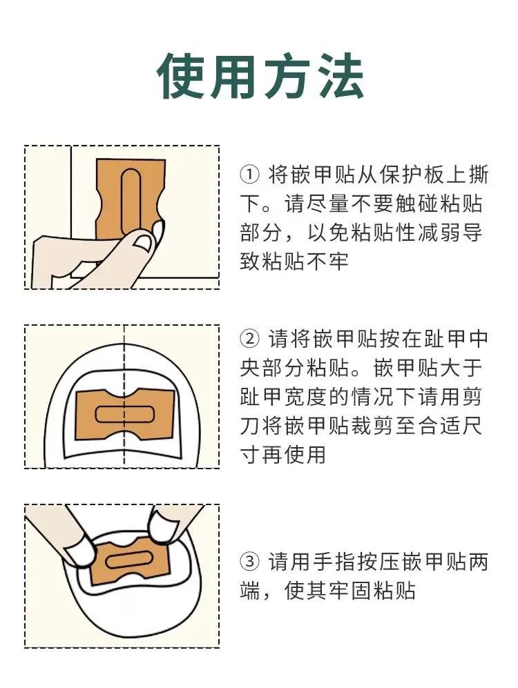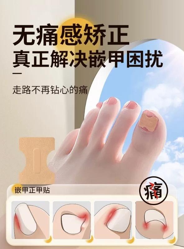 Os adesivos de correção de unhas aderem melhor às unhas dos pés e podem substituir o método tradicional de inserir algodão nas unhas. Eles podem realizar correções físicas com eficácia e são mais práticos de transportar e substituir. Recomenda-se trocá-los pela manhã, ao meio-dia e à noite.