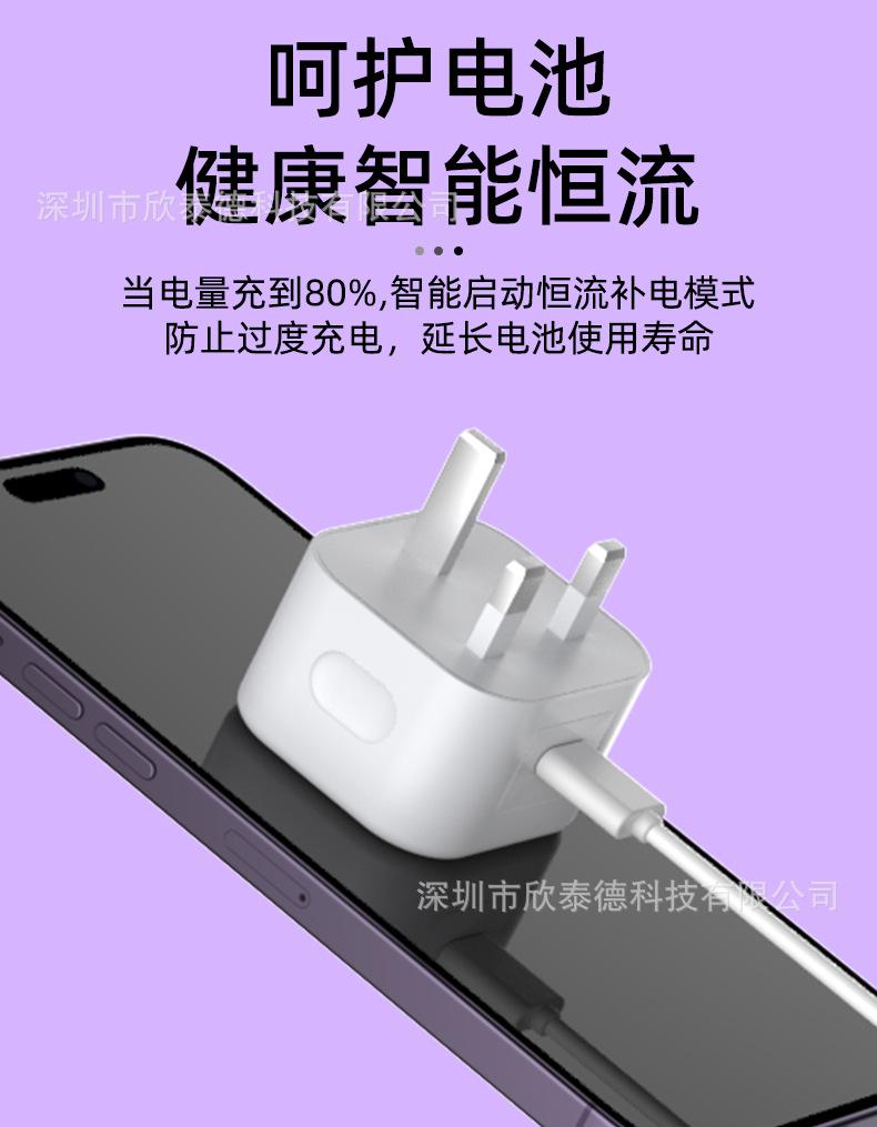 Carregador Rápido Pd20W para Celular Tipo C Padrão Britânico Adequado para Carregamento Rápido de Celulares Apple, Huawei e Outros