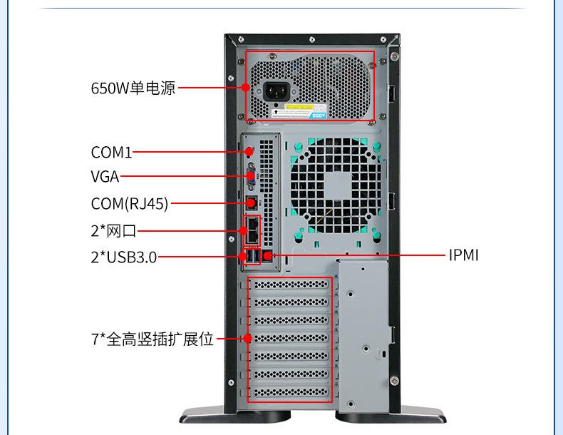 Tower ispc-t6050 (f2000+)/32g/4t*2/array card/650w single power supply