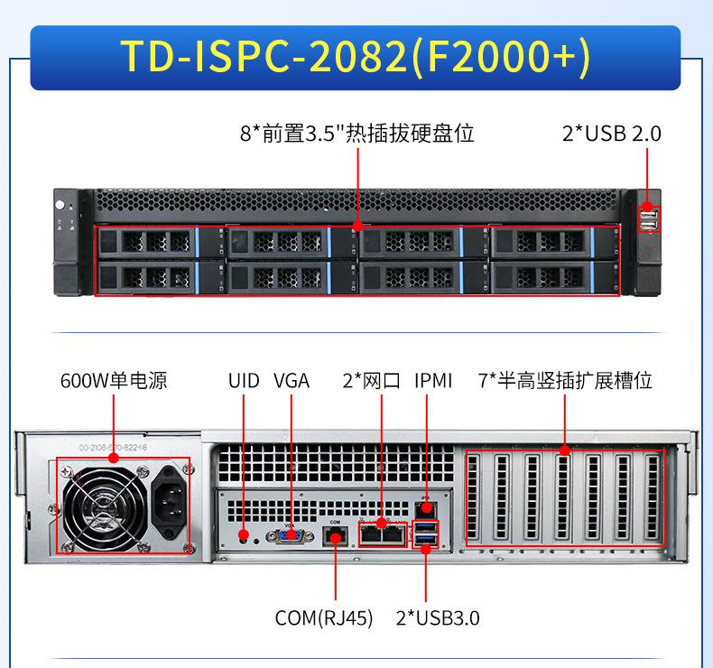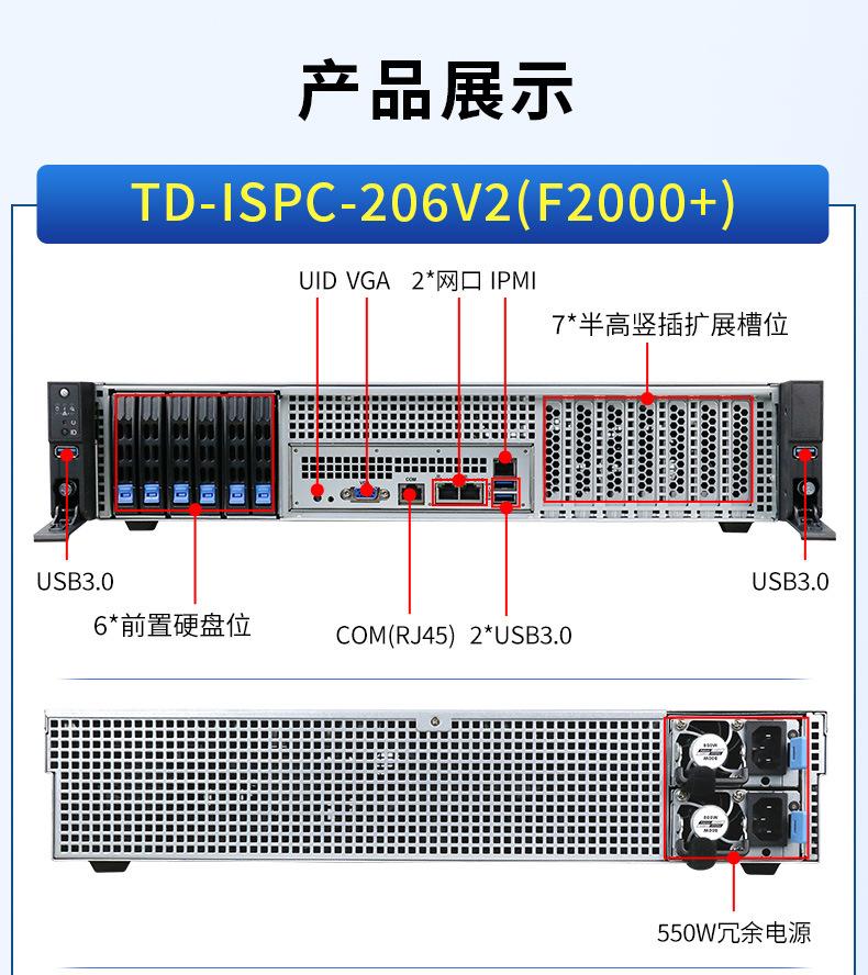 2u short depth ispc-206v2(f2000+)/32g/4t*2/array card/550w redundant power supply, 2u rack-mounted ispc-2082(f...