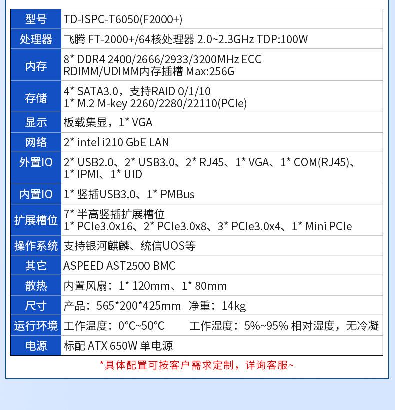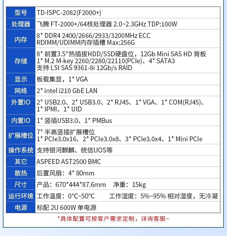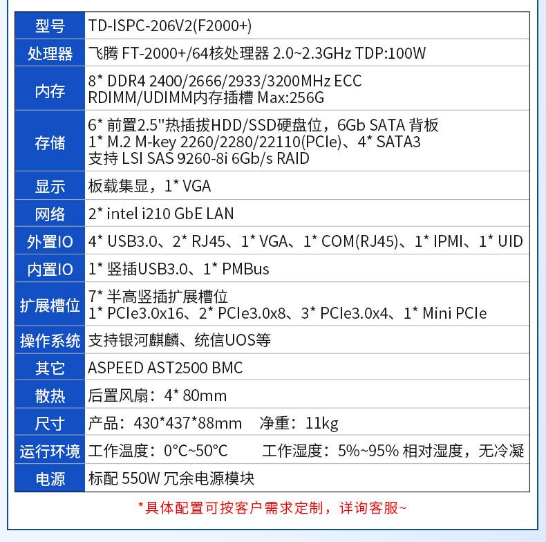 Tiadi Industrial Control Doméstico Feiteng F2000 64 Core Server Profundidade curta 2U Multi-Disk Tower Suporte Kirin