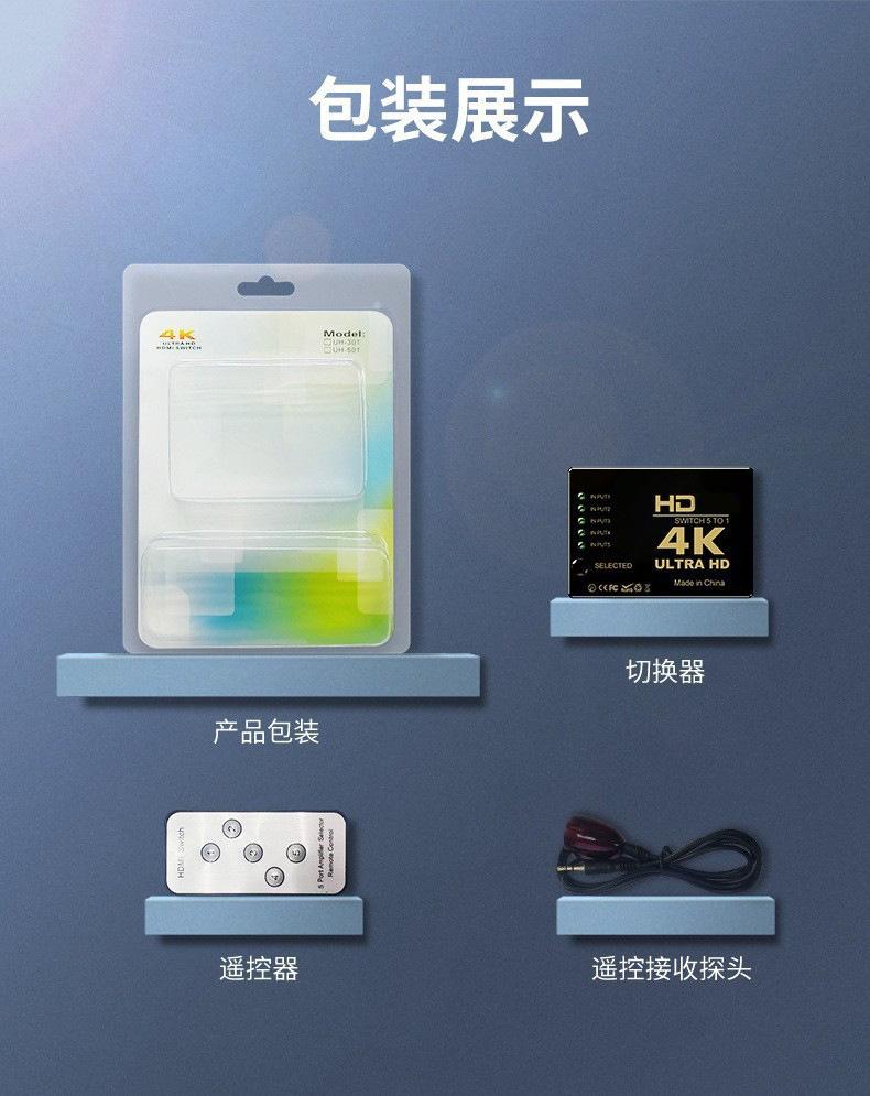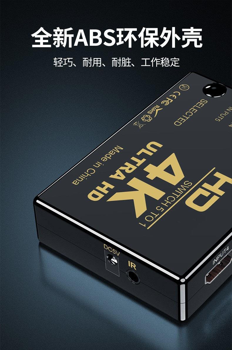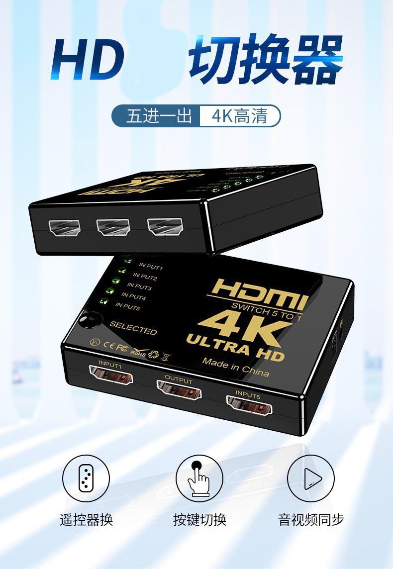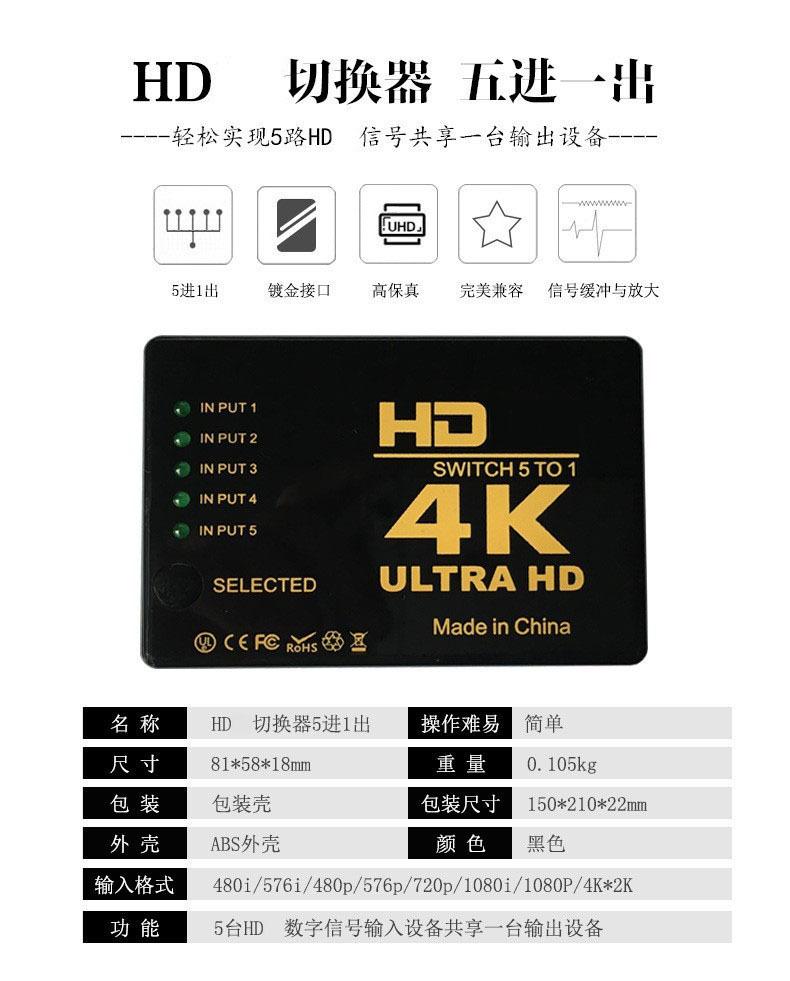 Chave Seletora Remota HD Transfronteiriça 5 Entradas 1 Saída Chave 4K Cinco Cortes com Controle Remoto Infravermelho Cinco em Um Saída
