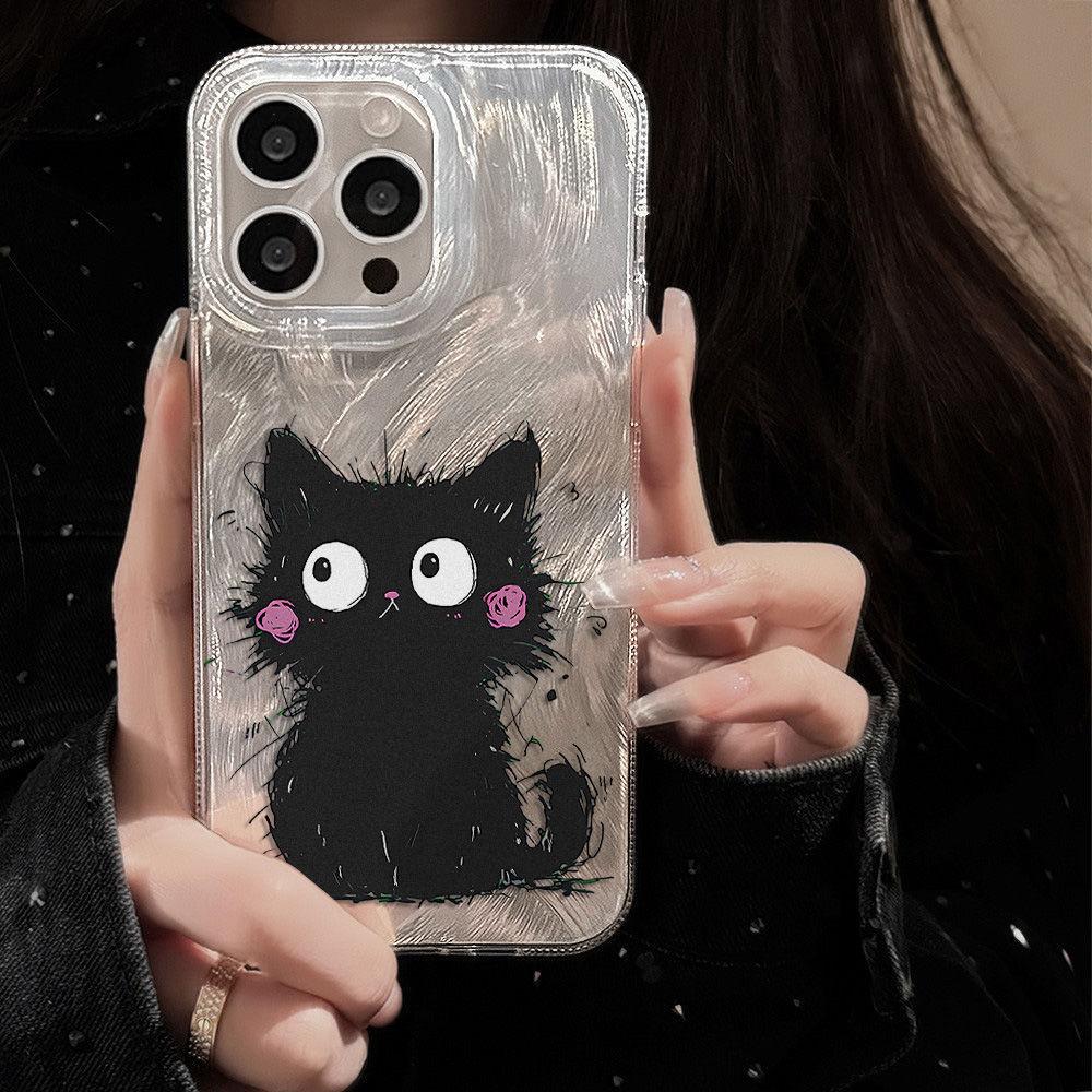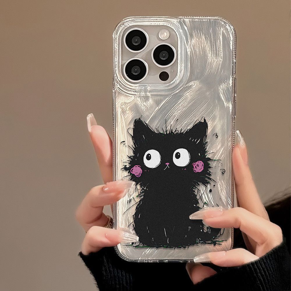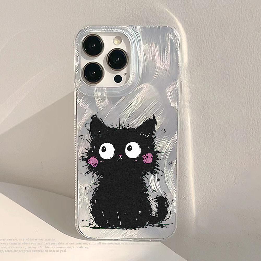 Gatinho Preto Fofo Adequado para iPhone 17 Pro Max Apple 16 Capa de Celular Imd Novo Modelo 14/15 Cobertura Total 13