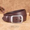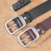 Cinto masculino de couro de vaca de camada superior, novo cinto casual de couro genuíno com fivela de pino e calças, cinto moderno