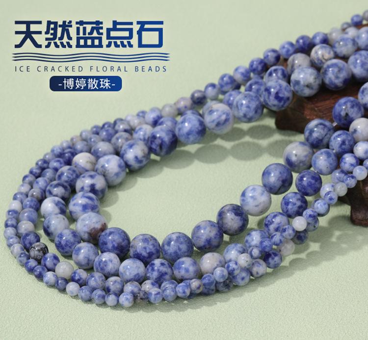 Pulseira de contas soltas de pedra azul natural com contas semi-acabadas faça você mesmo acessórios de joias comércio exterior atacado semi-acabados redondos