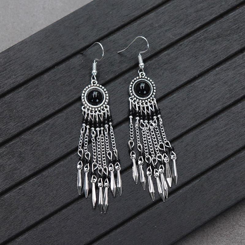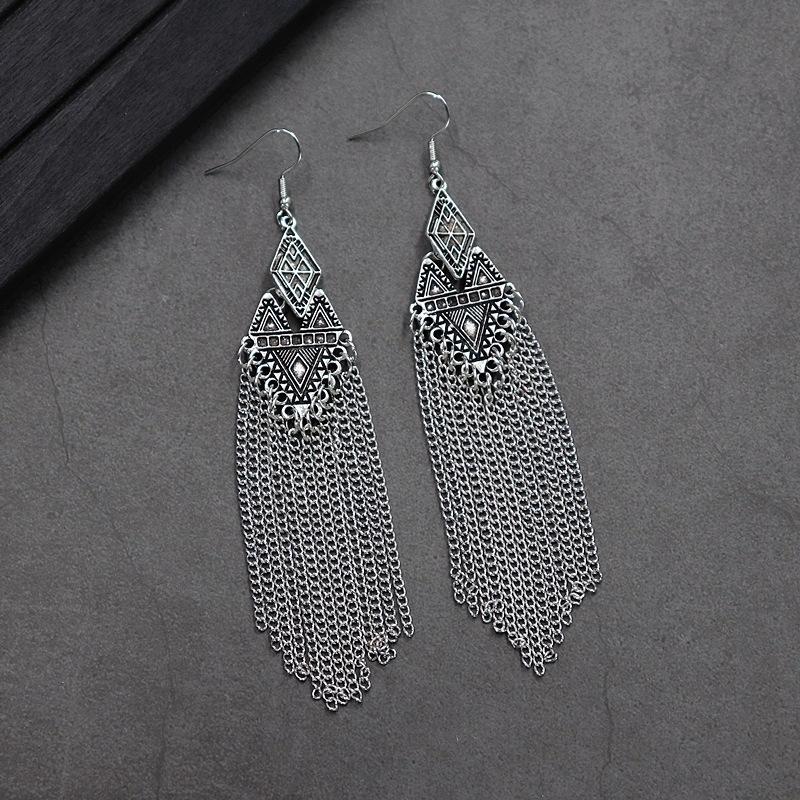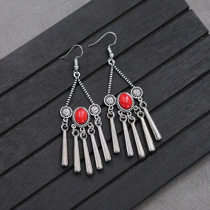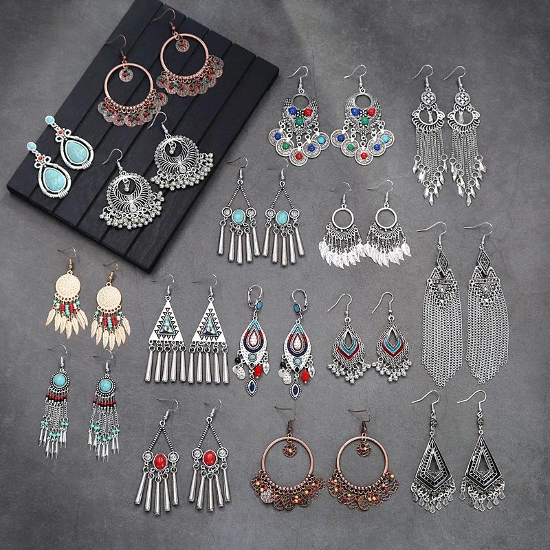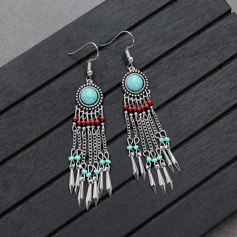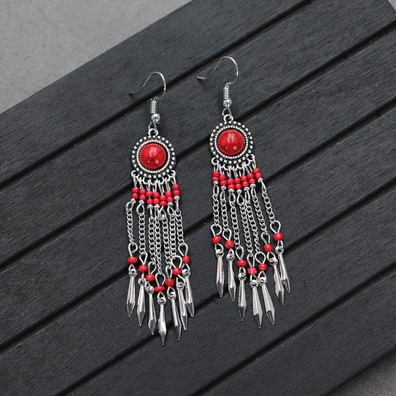 Brincos versáteis estilo étnico retrô, brincos femininos de borla boêmia para o feriado, brincos longos personalizados europeus e americanos