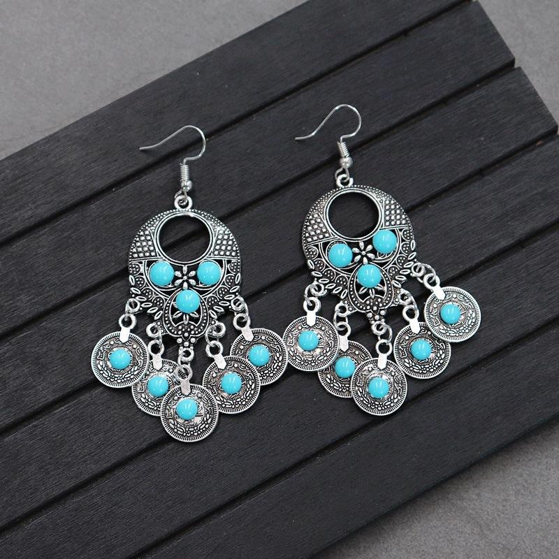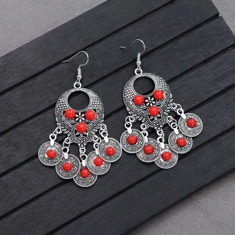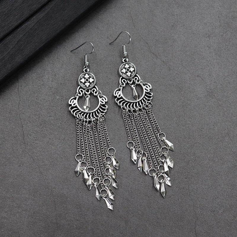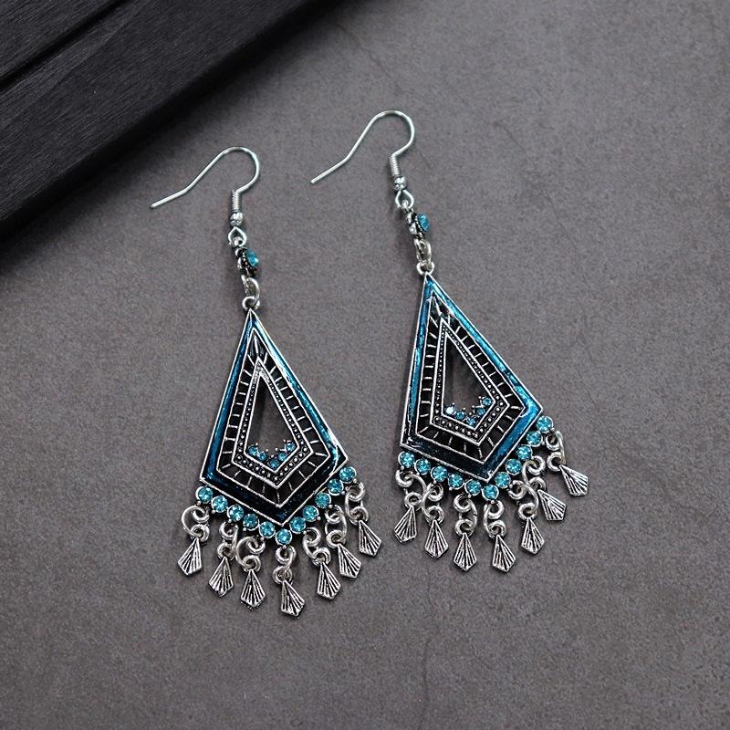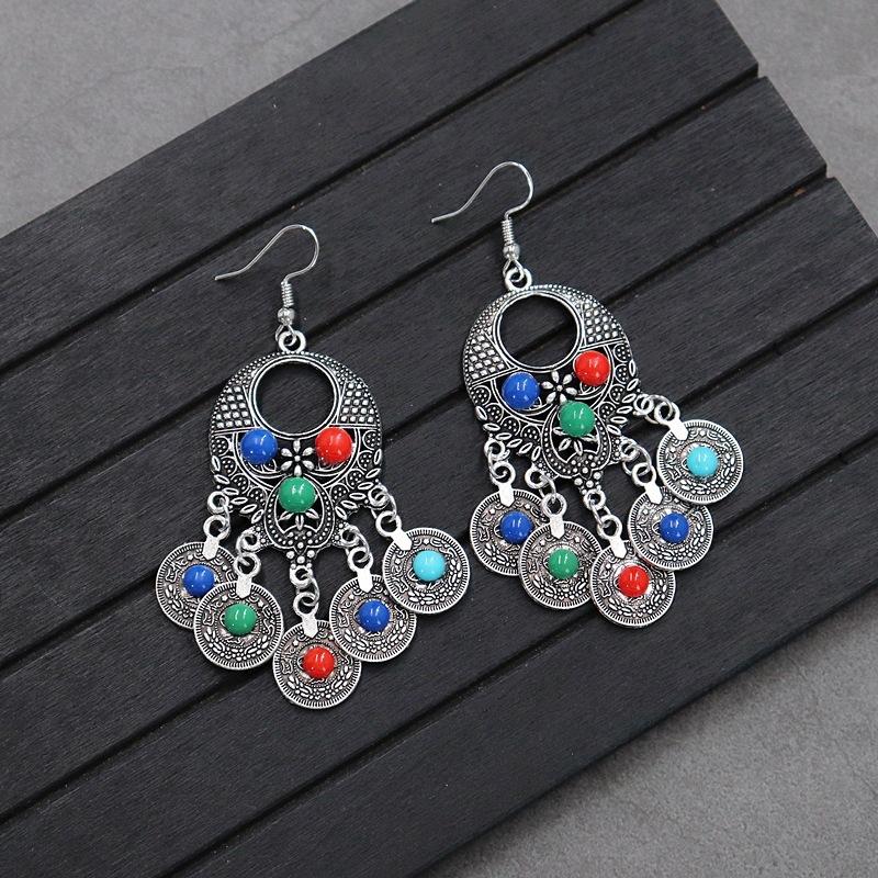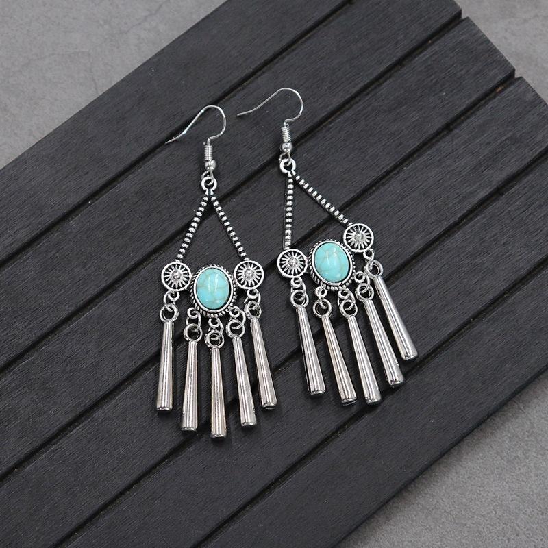 Brincos versáteis estilo étnico retrô, brincos femininos de borla boêmia para o feriado, brincos longos personalizados europeus e americanos