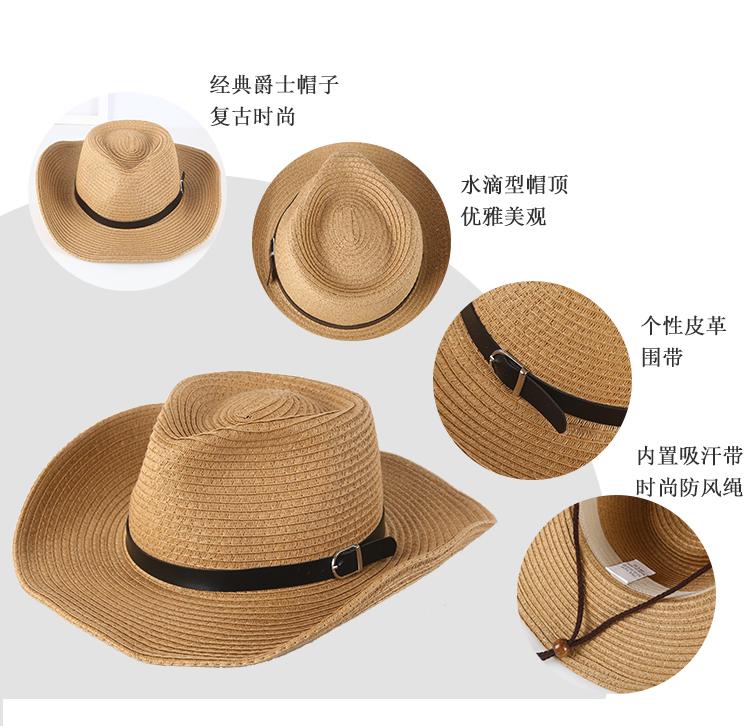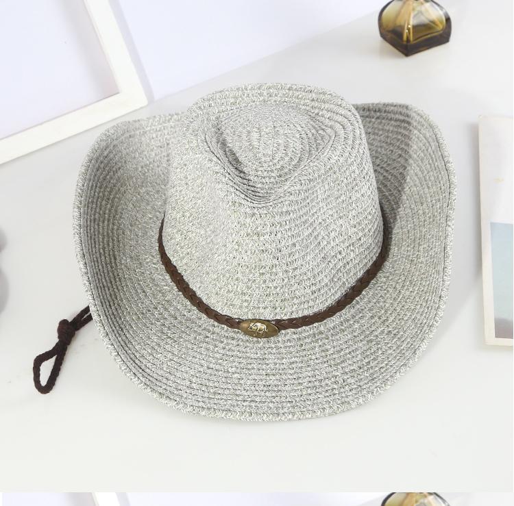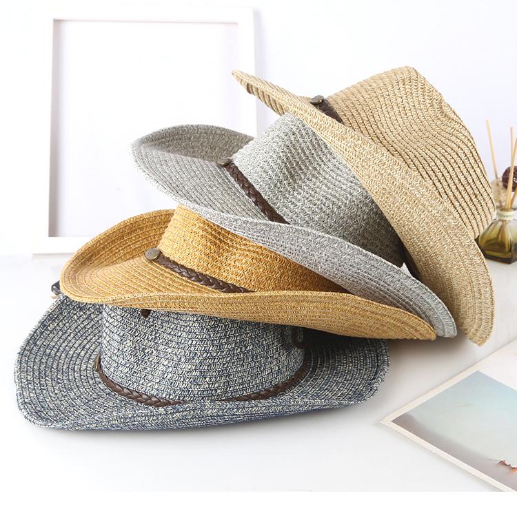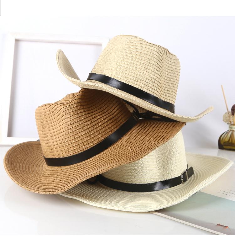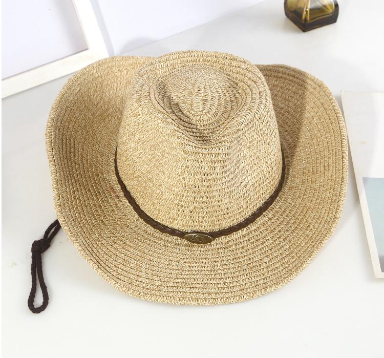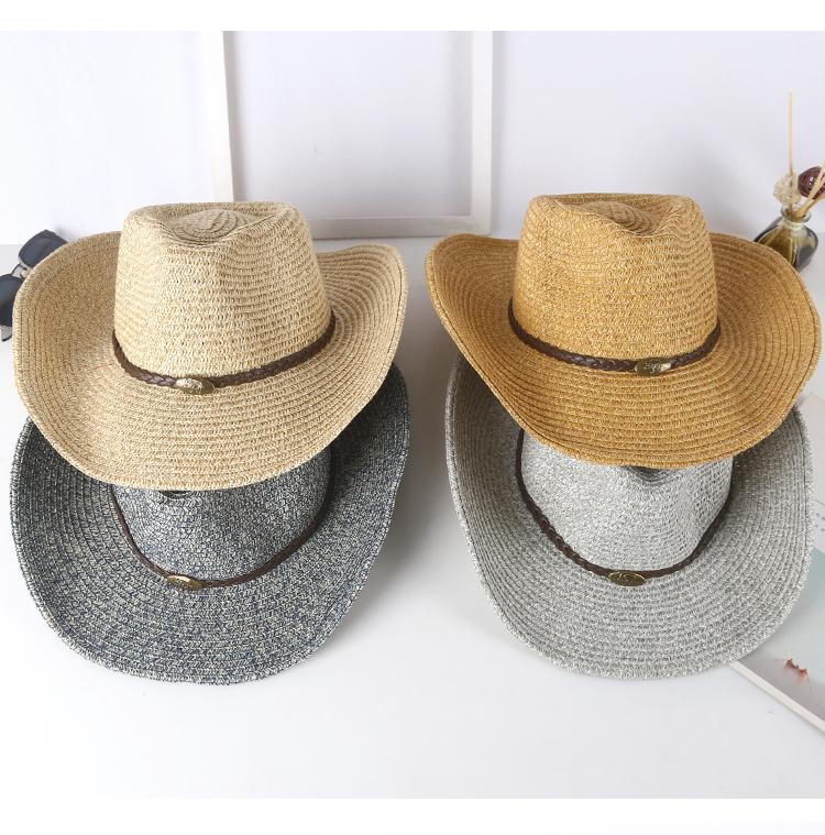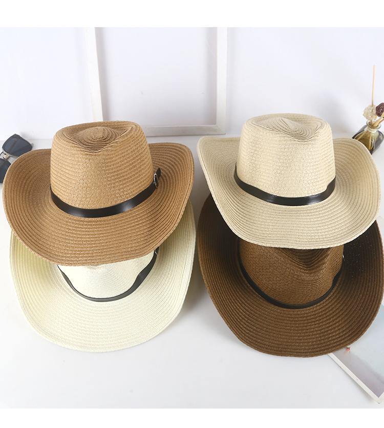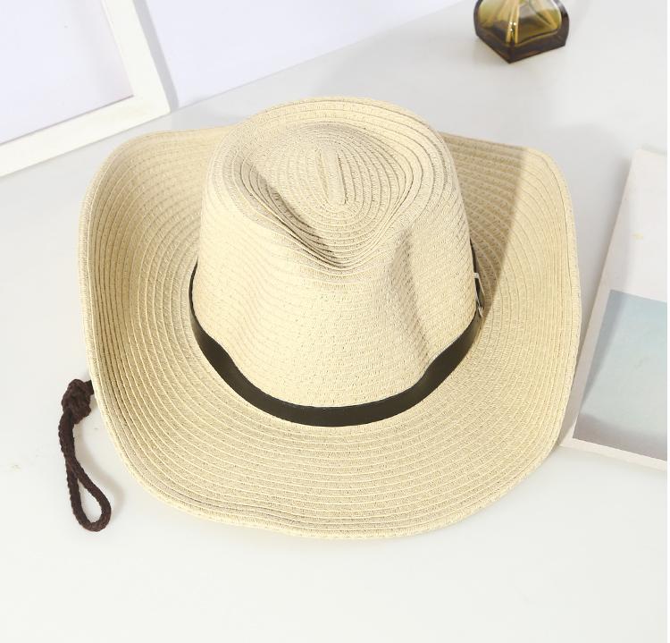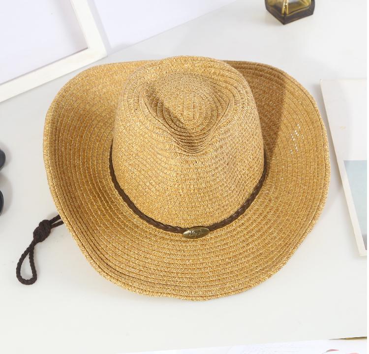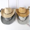 Chapéu de Palha Cowboy de Praia de Verão para Homens e Mulheres Chapéu ao Ar Livre para Proteção Solar Dobrável para Casal Chapéu de Sol Aba Larga Estilo Coreano