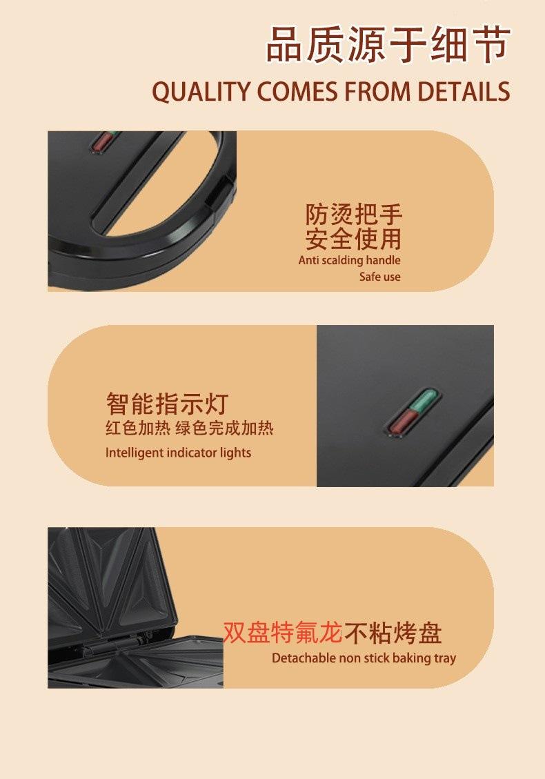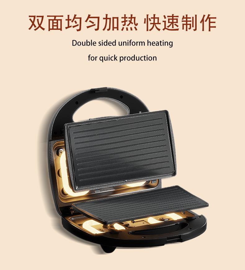 Características:Aquecimento de dupla face de 750 W, controle inteligente de temperatura; assadeira com revestimento antiaderente, fácil de limpar; alça anti-escaldante, luz indicadora inteligente