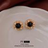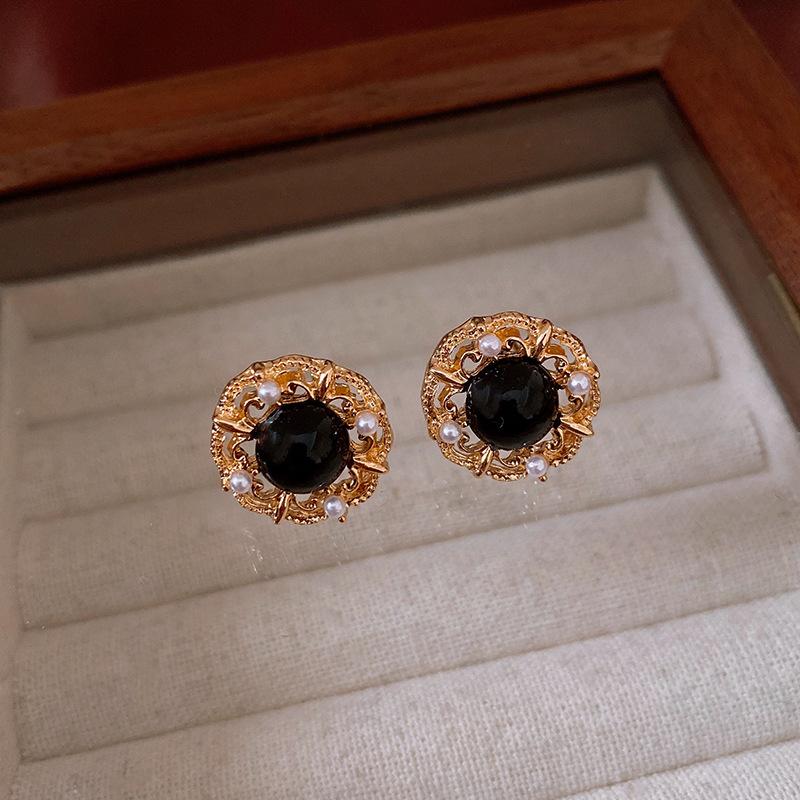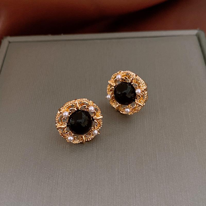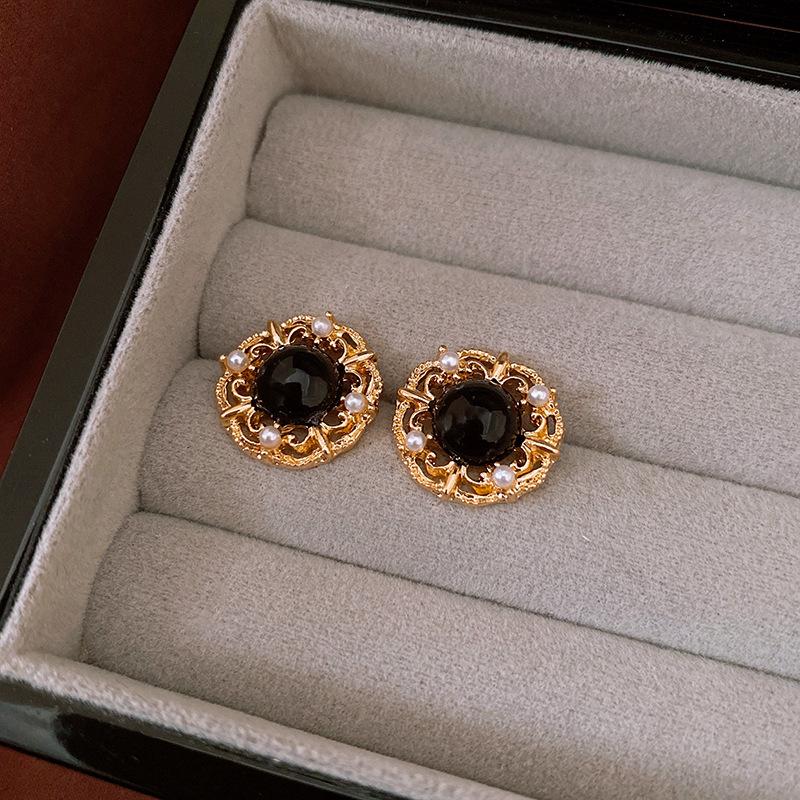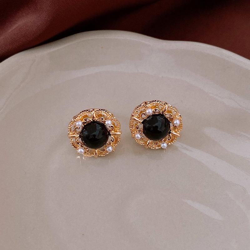 Brincos de pérolas de flor de agulha de prata vintage antigos médios, estilo retrô, brincos de temperamento de corte, brincos de alto senso, atacado