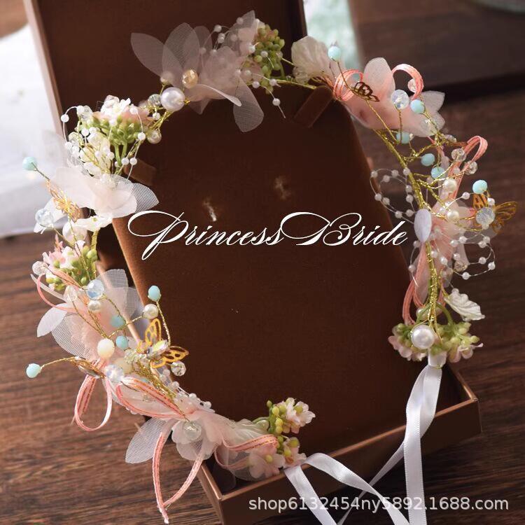 Tiara infantil com coroa de flores, faixa de cabeça de princesa super fada, faixa de cabeça de pérola, faixa de cabeça de flor de casamento, acessórios de cabelo Mori