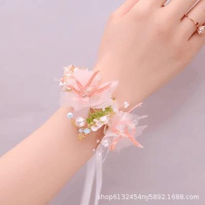 Fruit green bead flower ribbon, Fruit green bead flower ribbon + bracelet flower, Fruit green bracelet flower