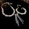 [Nome do bebê] Novo colar de moda europeia e americana transfronteiriça brincos anel pulseira conjunto de quatro peças diamante completo colar de três fileiras terno de noiva feminino
