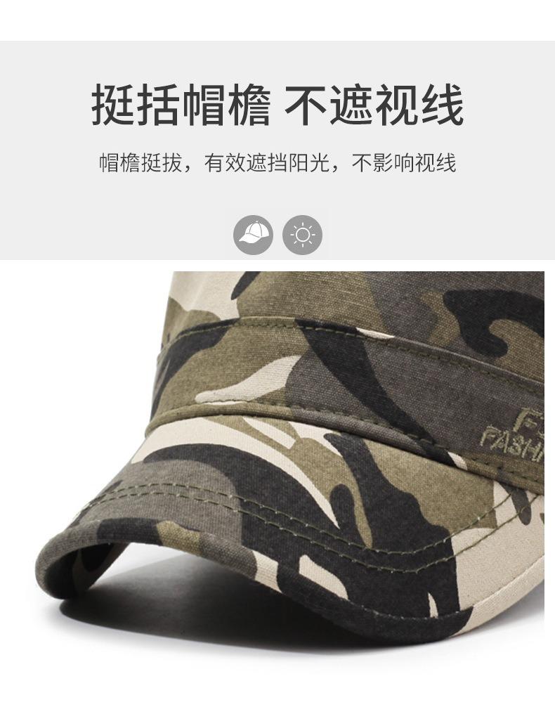 Chapéu de cano alto plano para todas as estações, camuflagem militar, chapéu militar masculino, primavera e verão, novo chapéu de sol de língua de pato da moda, chapéu de sol ao ar livre